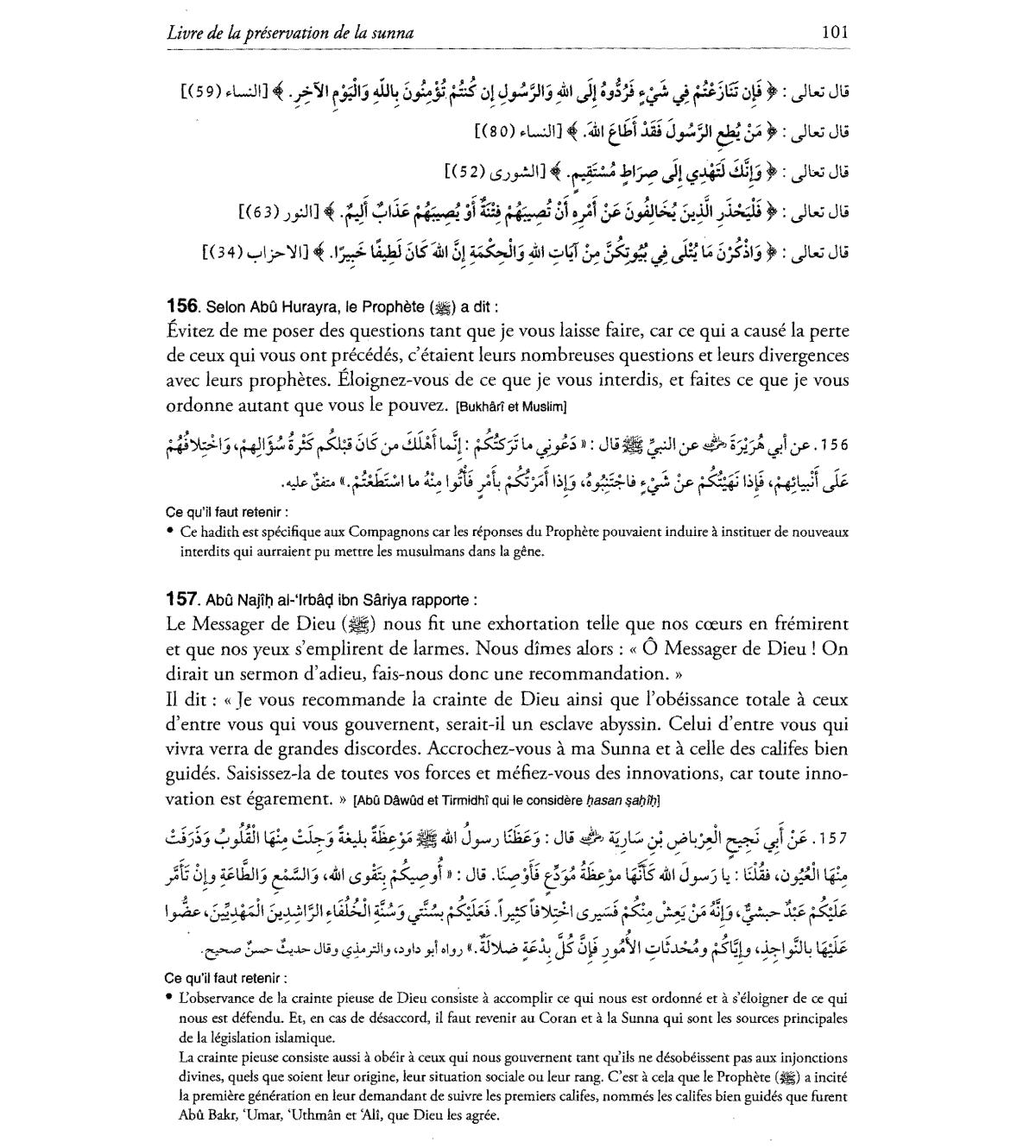 nous est defendu. Et, en cas de desaccord, il faut revenir au Coran et