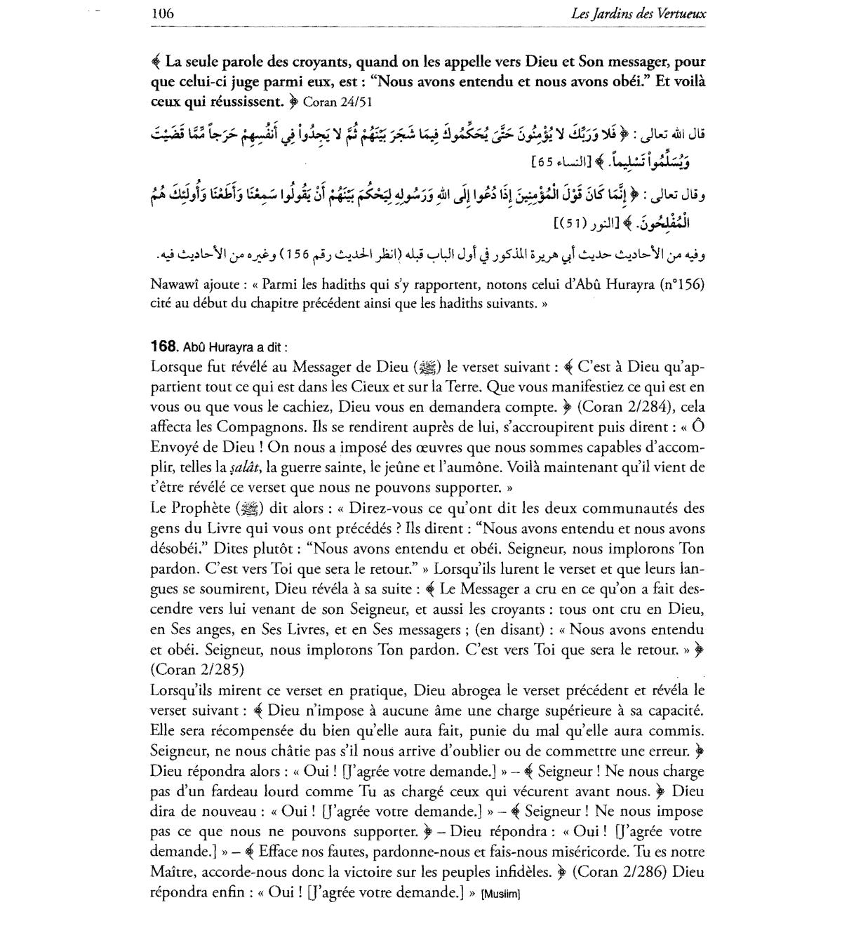 cite au debut du chapitre precedent ainsi que les hadiths suivants. )}