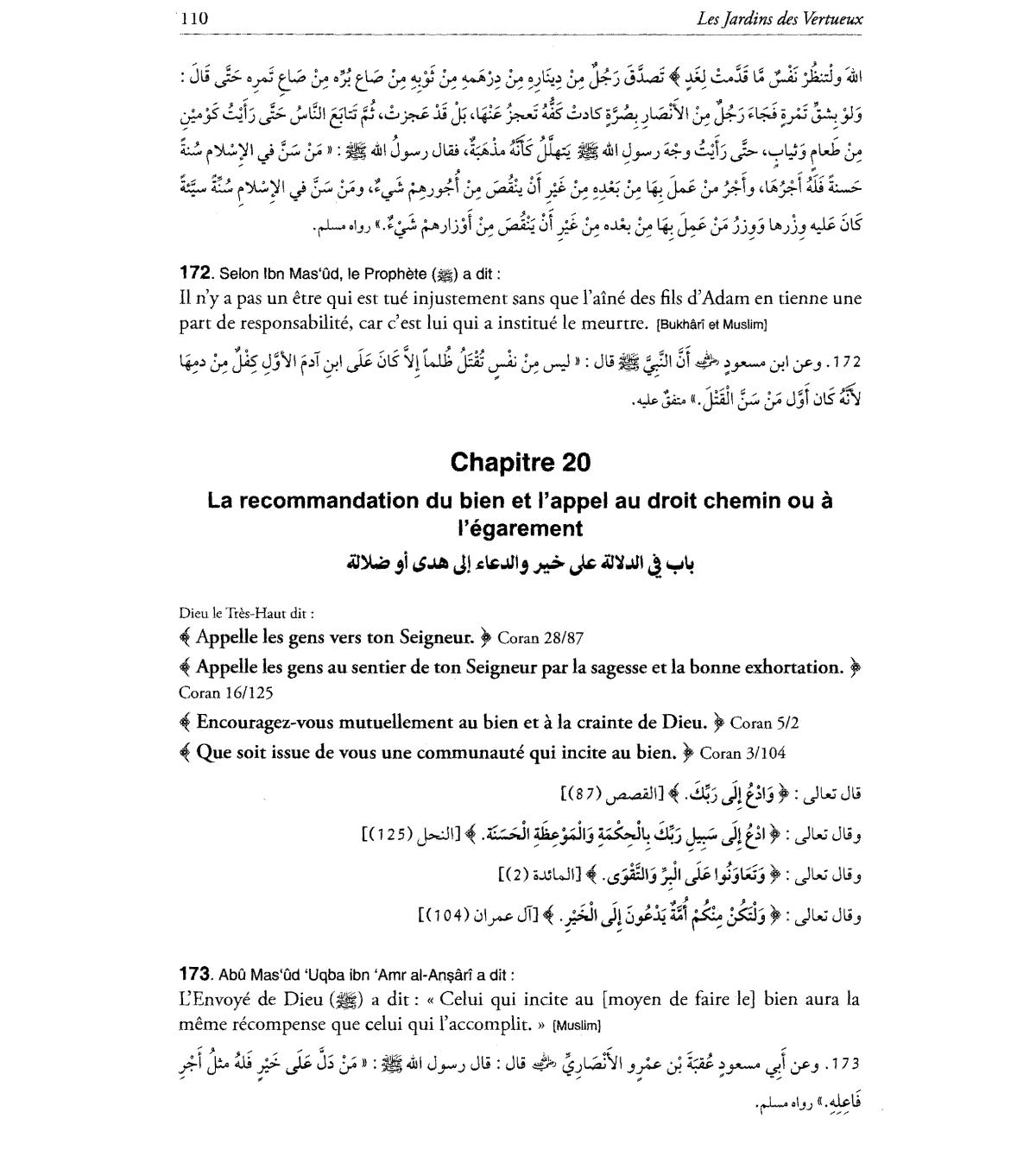 II n'y a pas un etre qui est tue injustement sans que l'aine des fils d'Adam en denne une