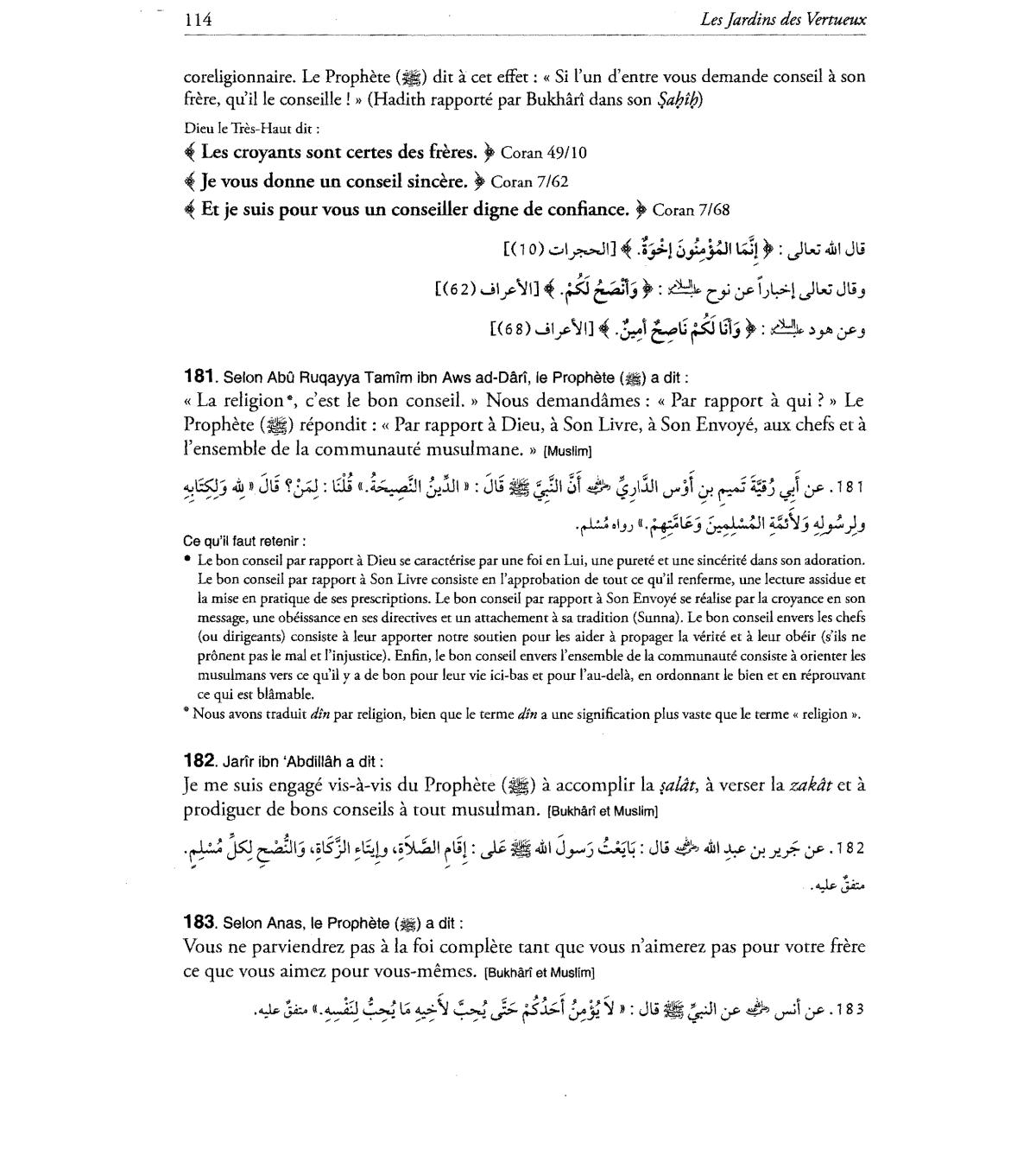 pronent pas Ie mal et !'injustice). Enfin, Ie bon conseil envers l'ensemble de la communallte consiste a orienter les
