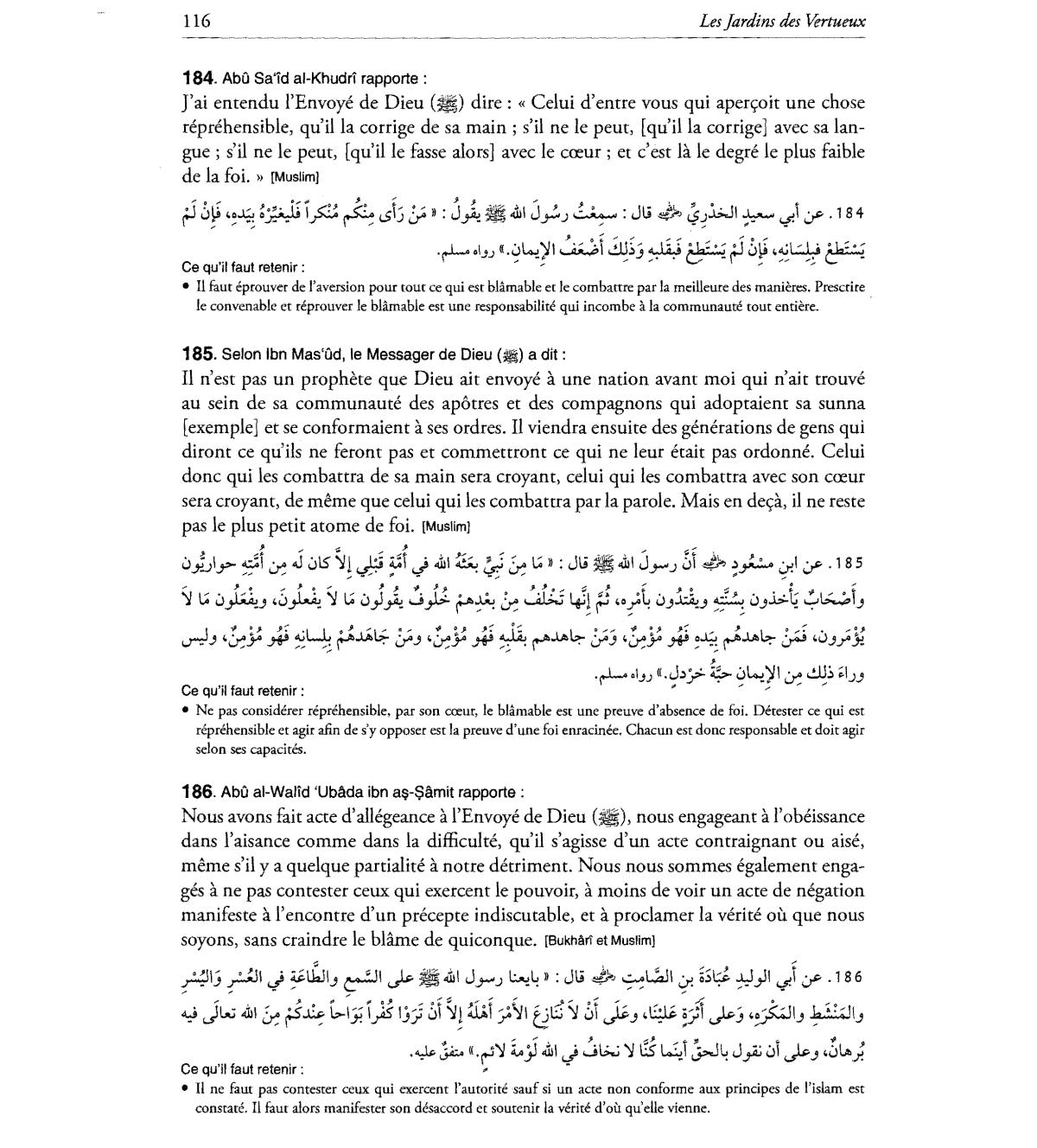 • II ne faut pas contester ceux qui ex:ercent I'autoritesauf si un aete non conforme aux principes de I'islam est