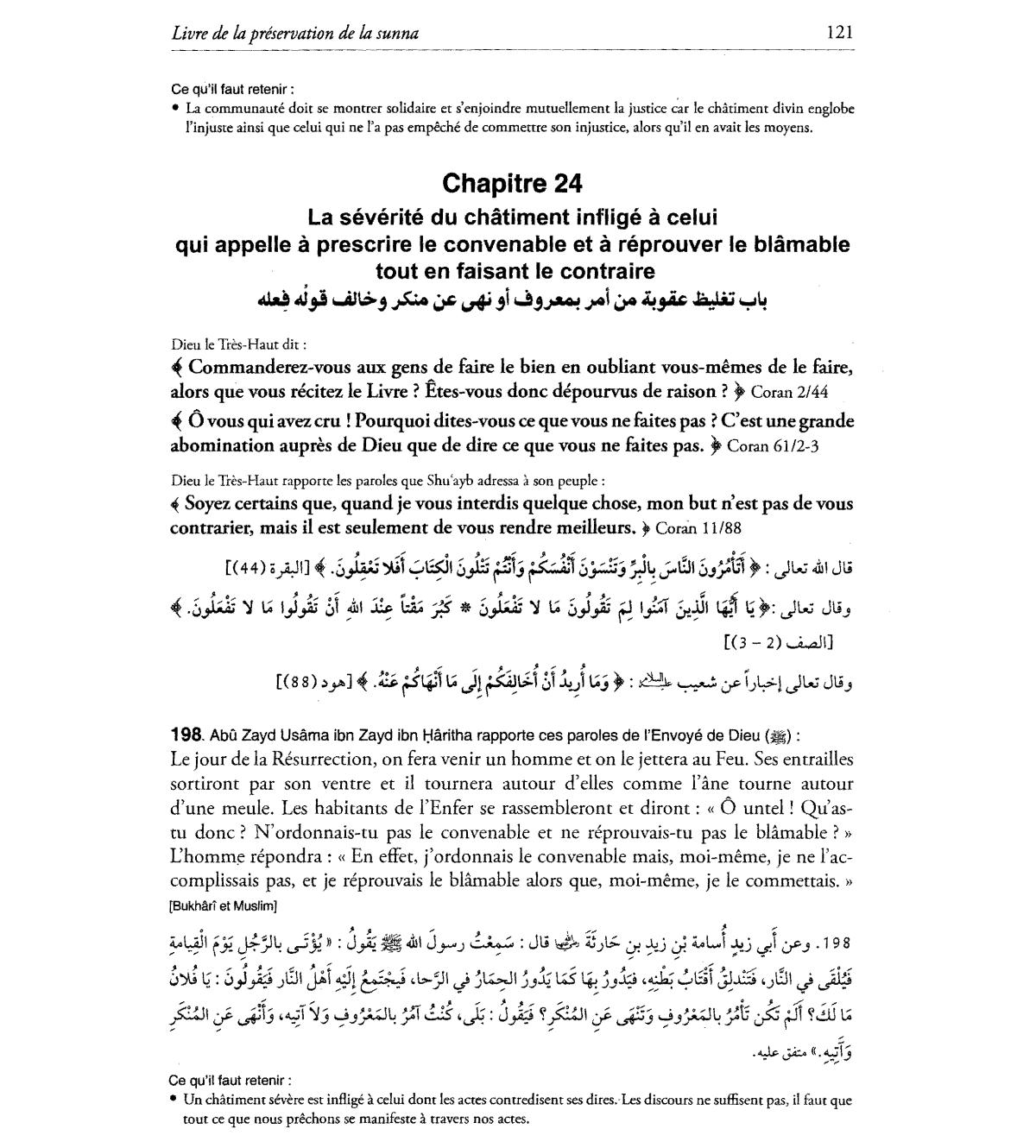 Le jour de la Resurrection, on fera venir un homme et on Ie jettera au Feu. Ses entrailles