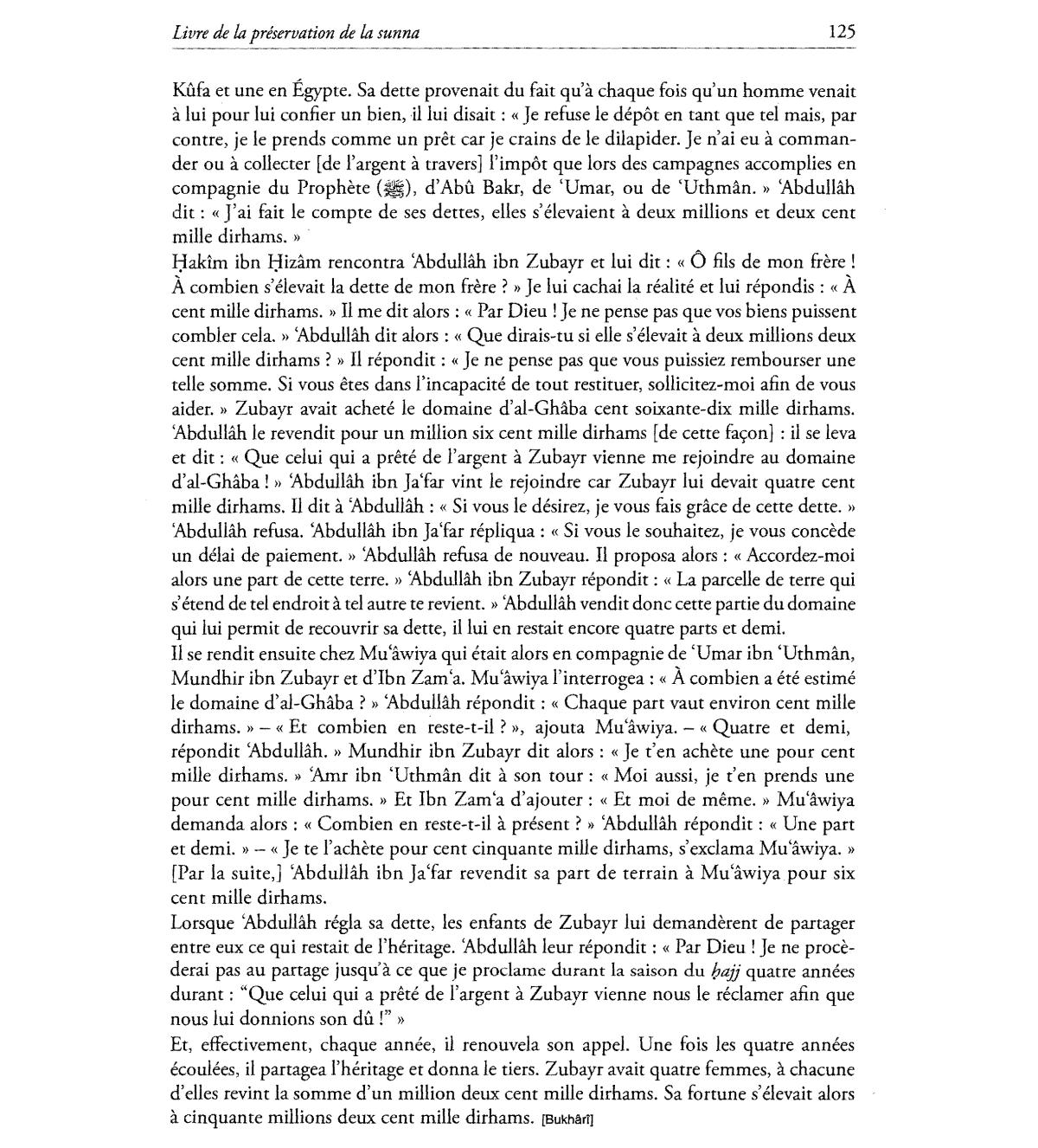 Zubayr avait achete Ie domaine d'al-Ghaba cent soixante-dix mille dirhams.