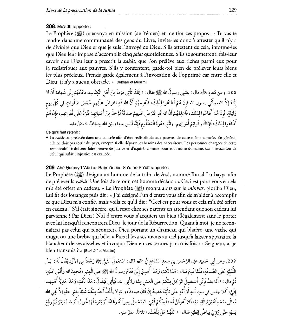 la redistribuer aux pauvres. S'ils y consentent, garde-toi bien de prelever leurs biens
