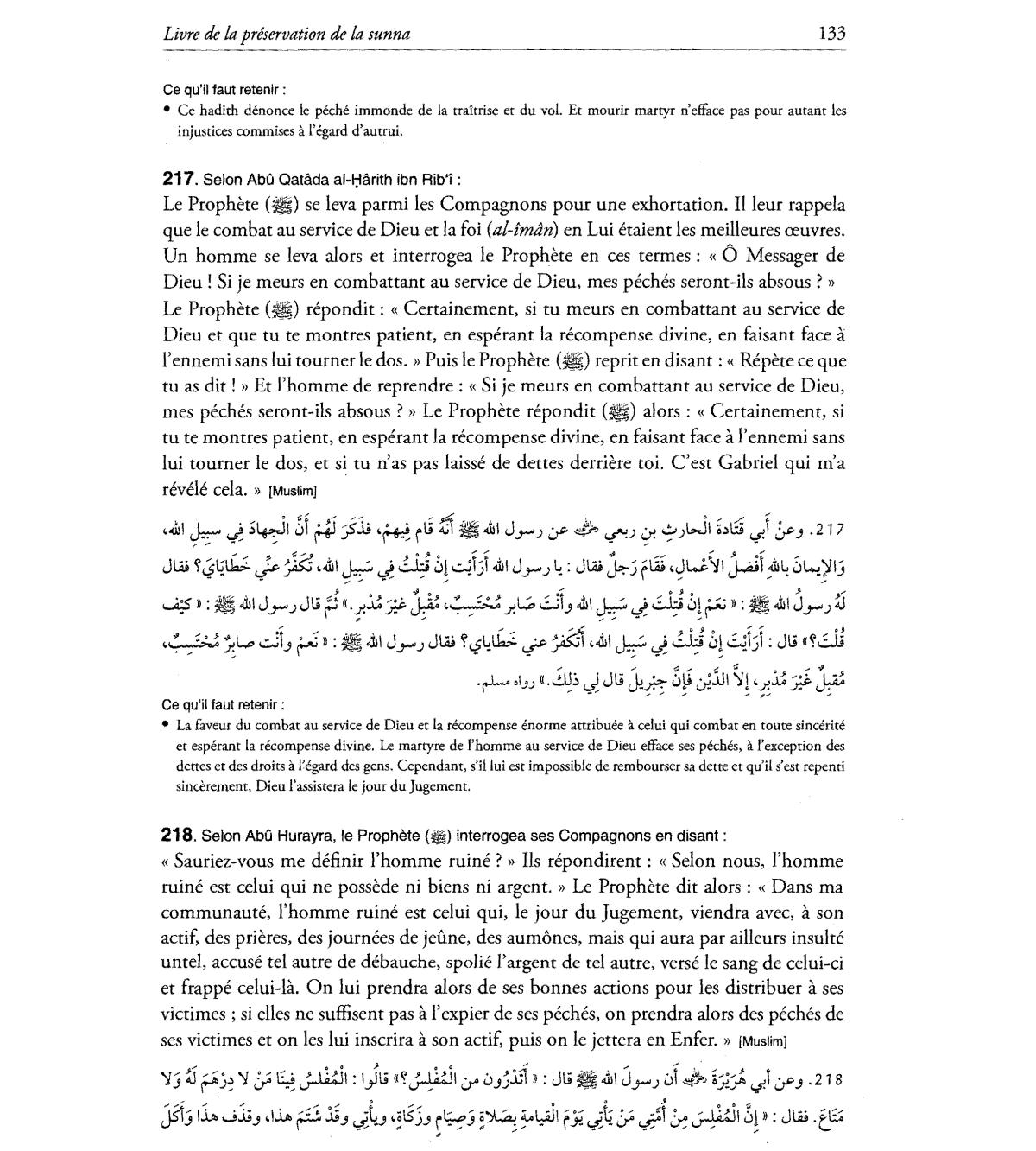 Selon AbU Hurayra, Ie Prophete (m) interrogea ses Compagnons en disant :