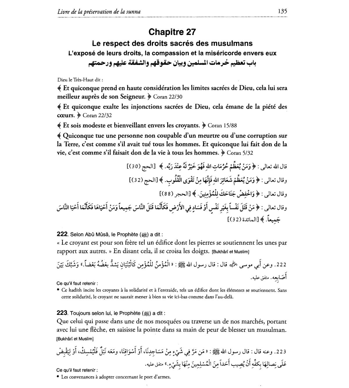 Que celui qui passe dans une de nos mosquees ou traverse un de nos marches, portant