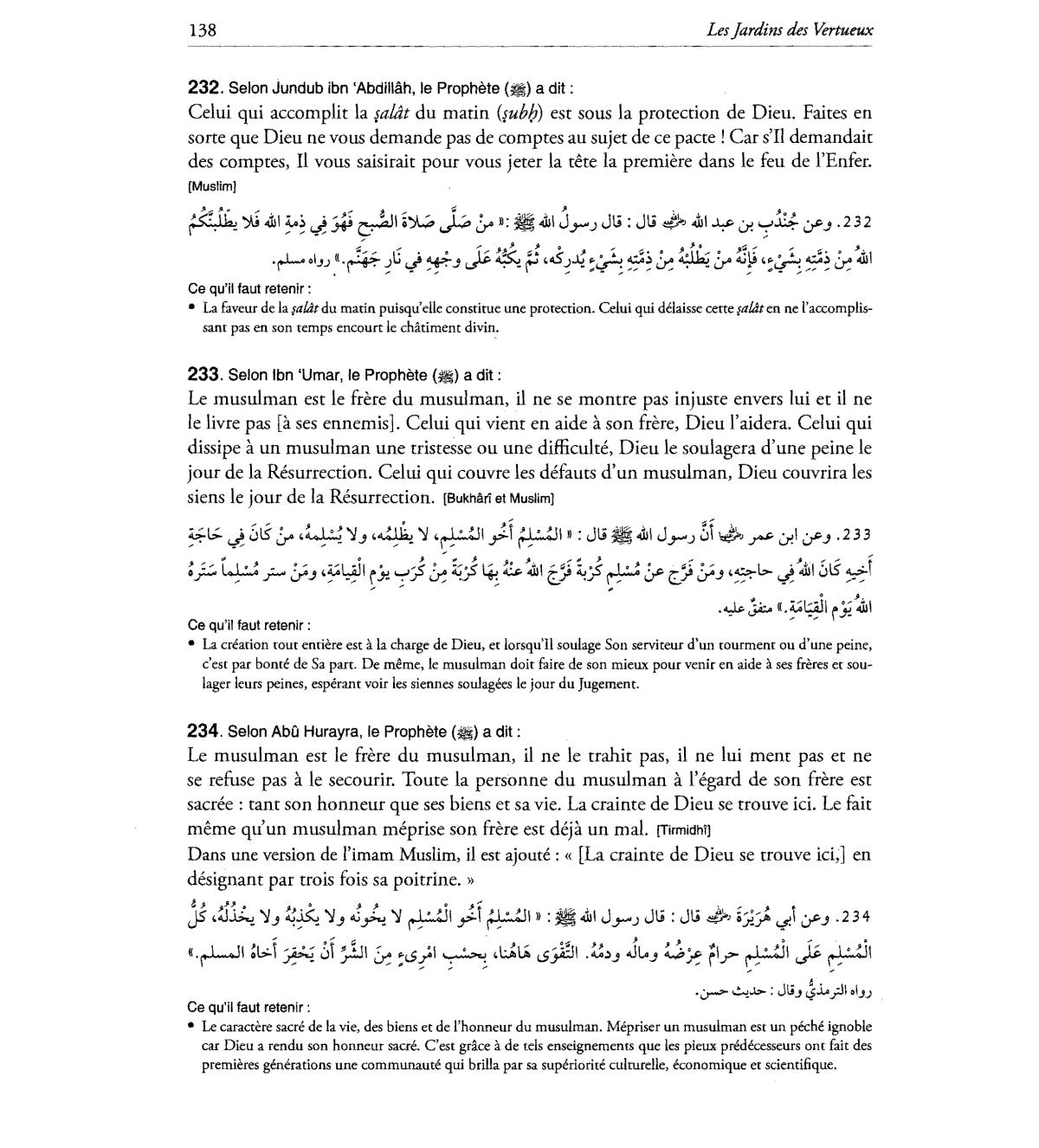 caractere sacre de la vie, des biens et de l'honneur du musulman. Mepriser un musulman est un peche ignoble