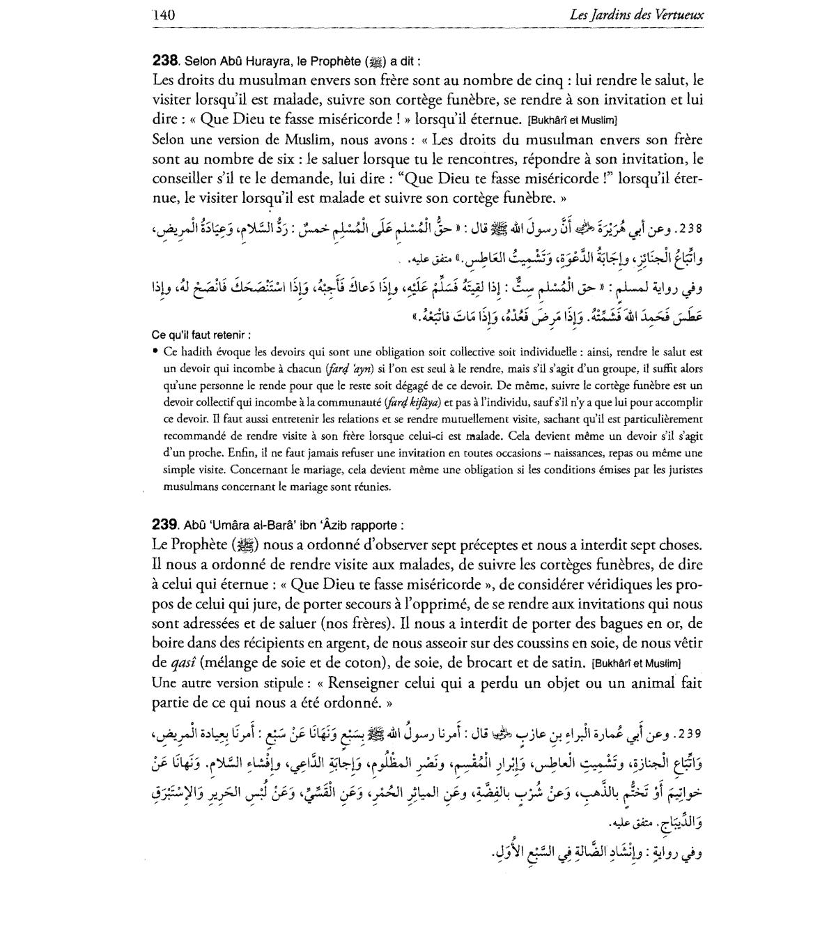 Les droits du musulman envers son Frere sont au nombre de cinq : lui rendre Ie salut, Ie