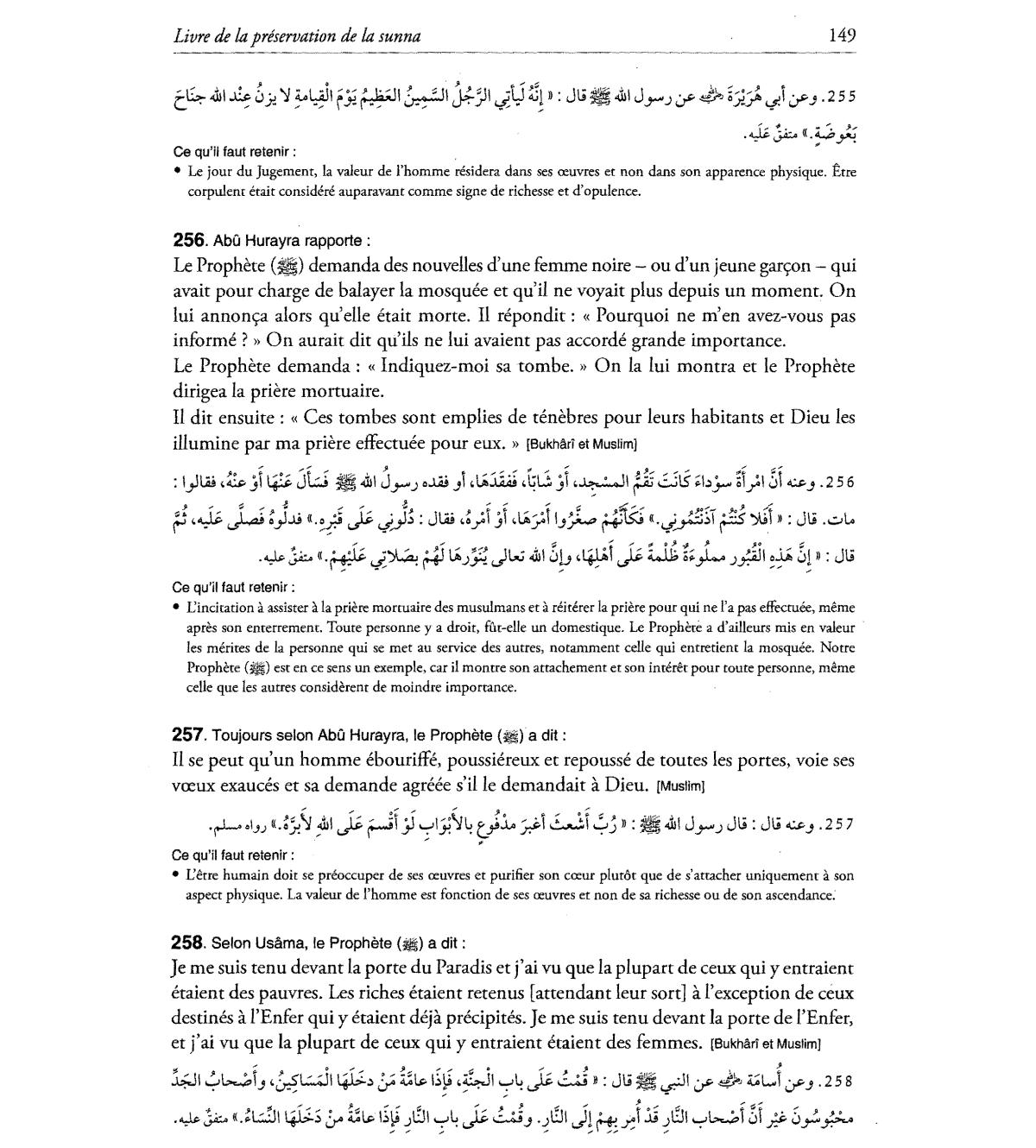 jour du Jugement, la valeur de l'homme residera dans ses reuvres et non dans son apparence physique. Etre