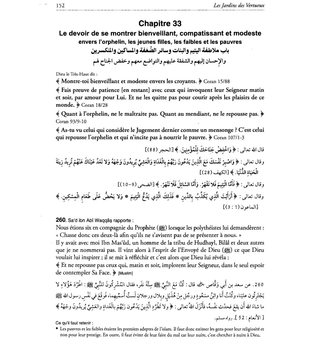 l'orphelin, ne Ie maltraite pas. Quant au mendiant, ne Ie repousse pas."