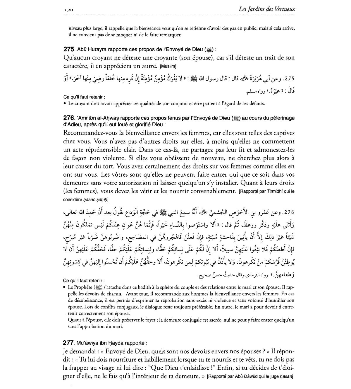 recommande aux hommes la bienveillance envers les femmes. En cas