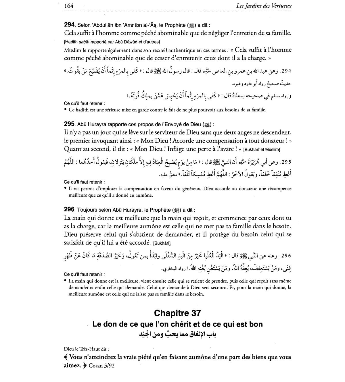 as Ia charge, car la meilleure aumone est celie qui ne met pas ta famille dans Ie besoin.