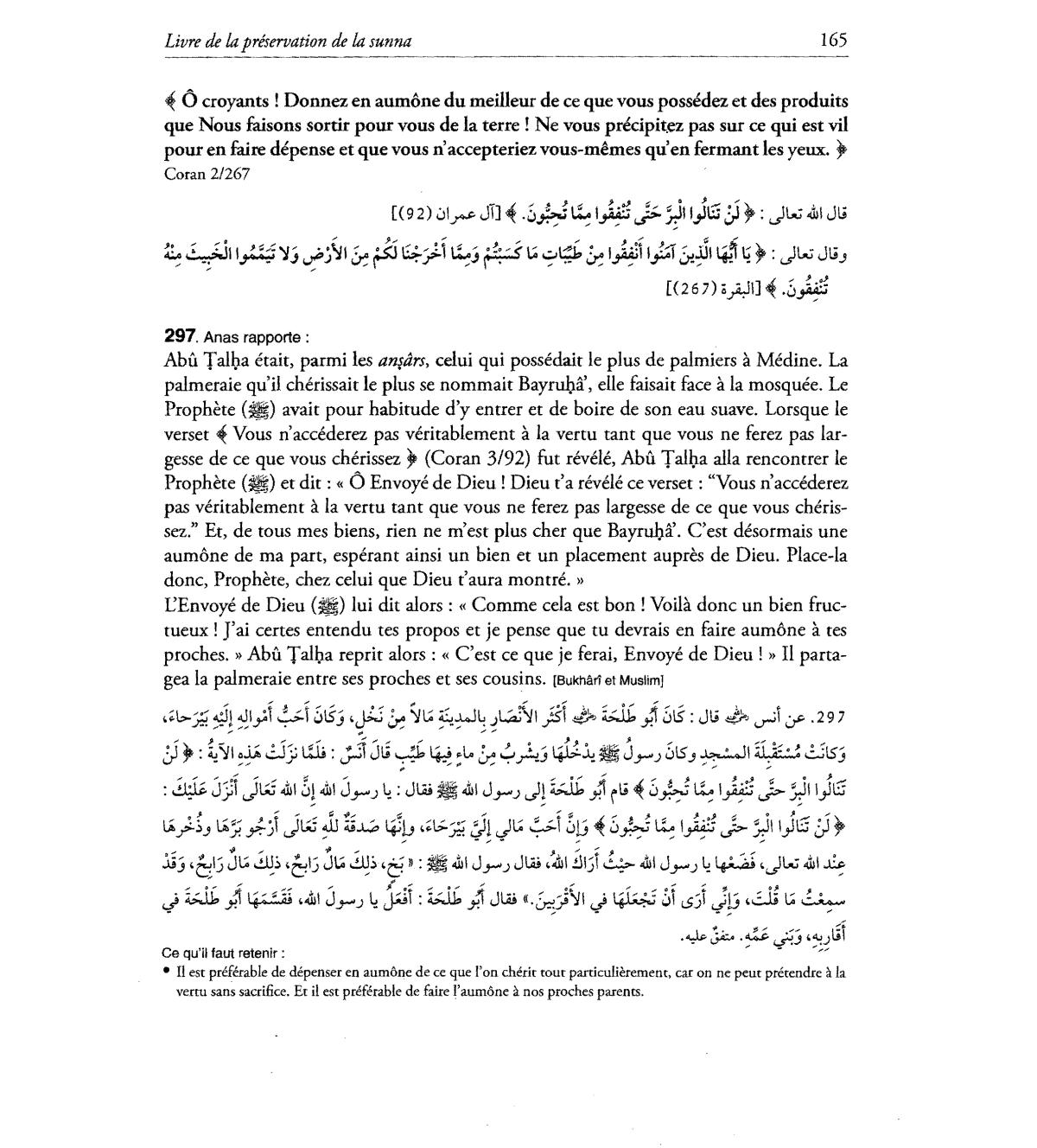 aumone de rna part, esperant ainsi un bien et un placement aupres de Dieu. Place-Ia