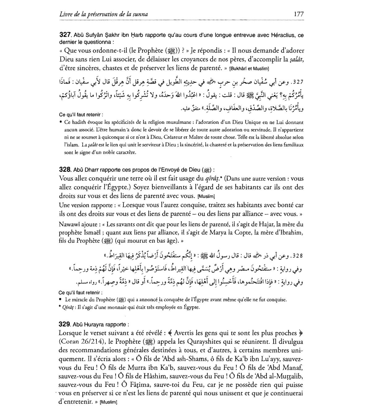 hadith boque les spedfidtes de la religion musulmane: I'adoration d'un Dieu Unique en ne Lui donnallt