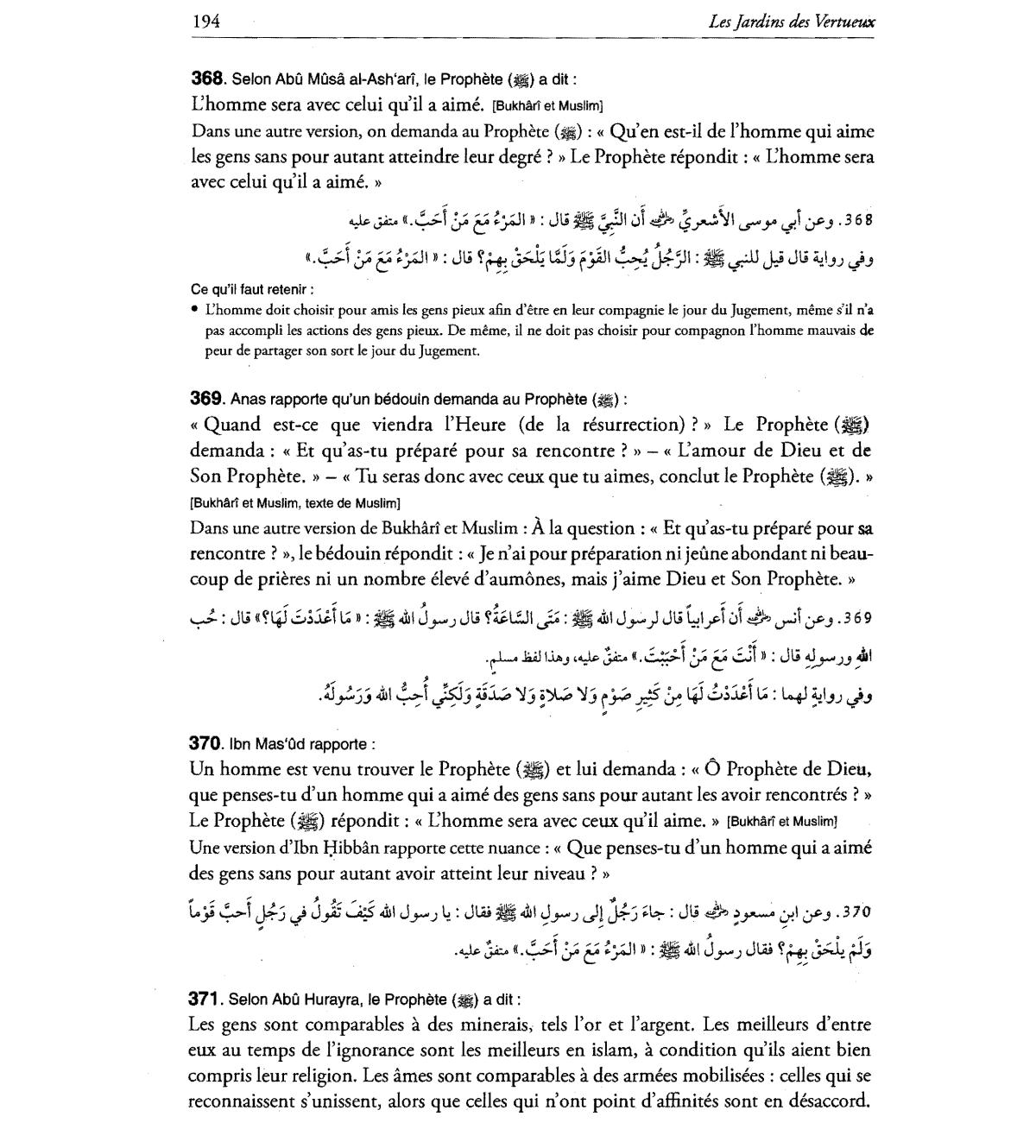 Tu seras donc avec ceux que tu aimes, condut Ie Prophete