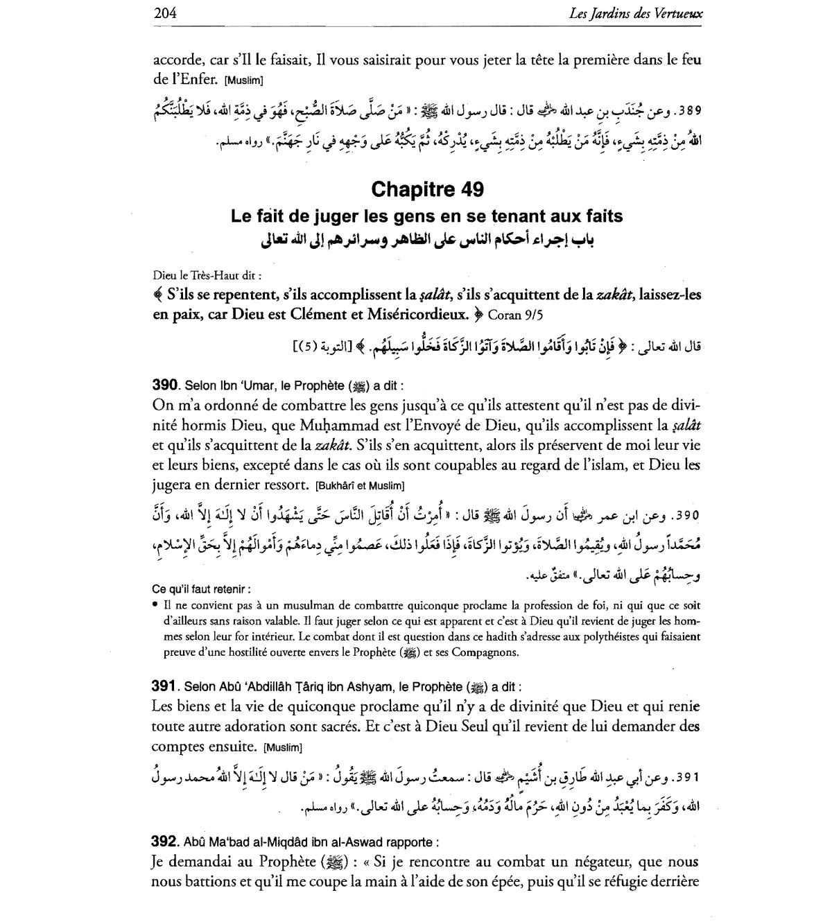 Les biens et la vie de quiconque prodame qu'i! n'y a de divinite que Dieu et qui renie
