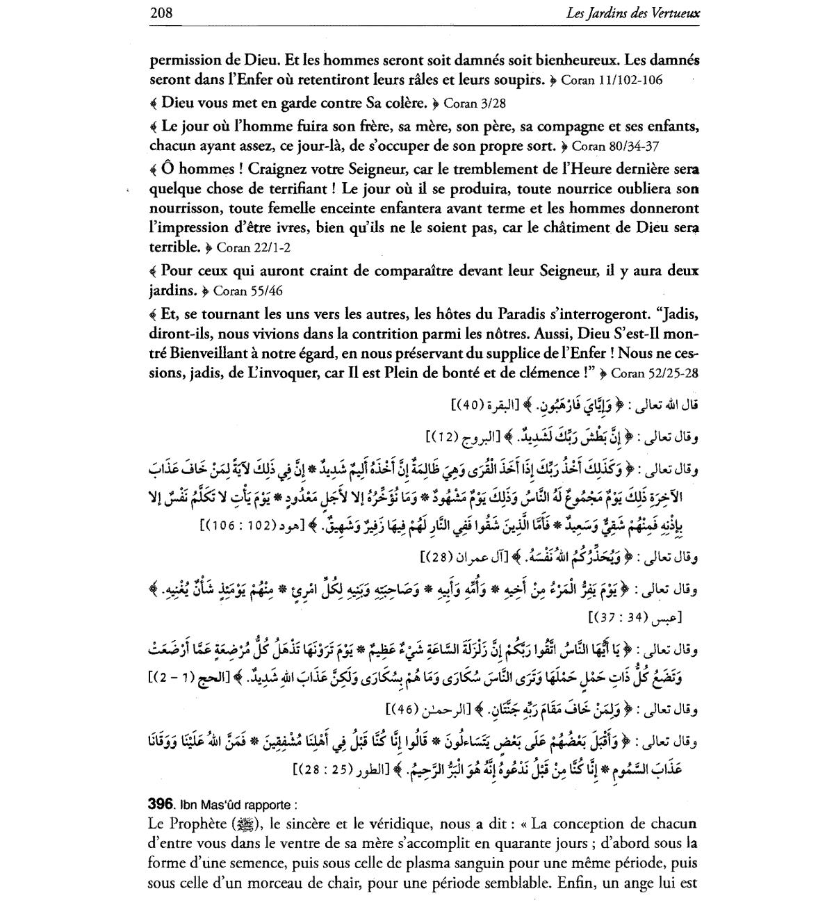 Pour ceux qui auront craint de comparaitre devant leur Seigneur, il y aura deux