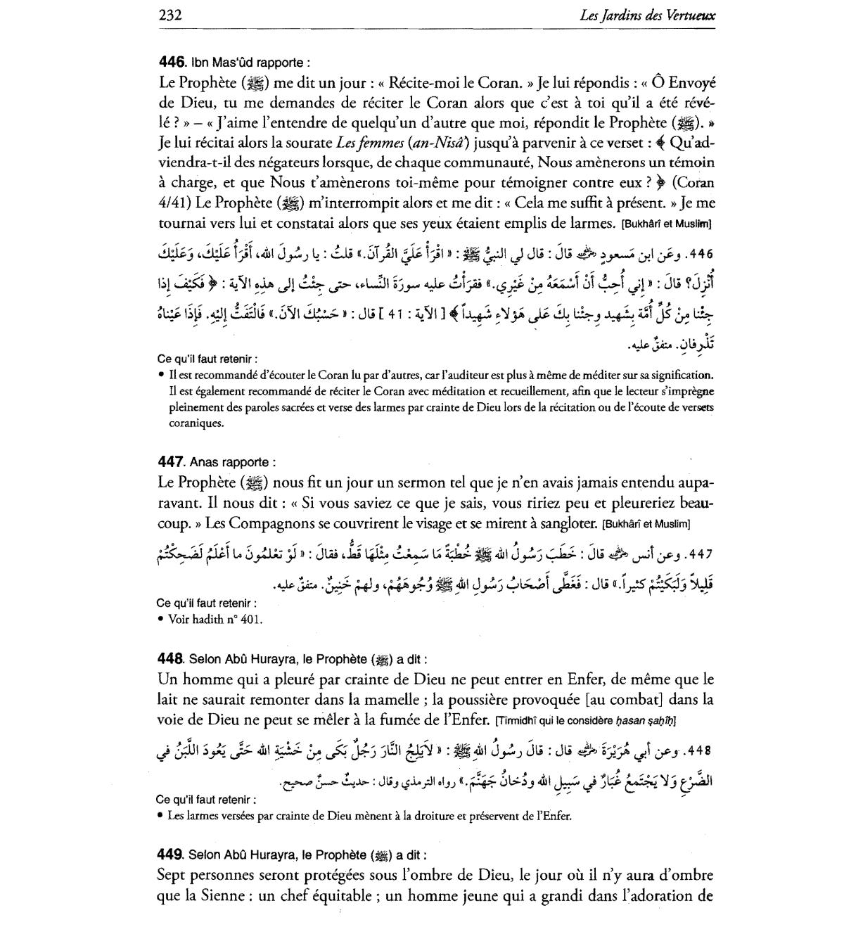pleinement des paroles sacrees et verse des Iarmes par crainte de Dieu lors de Ia recitation ou de