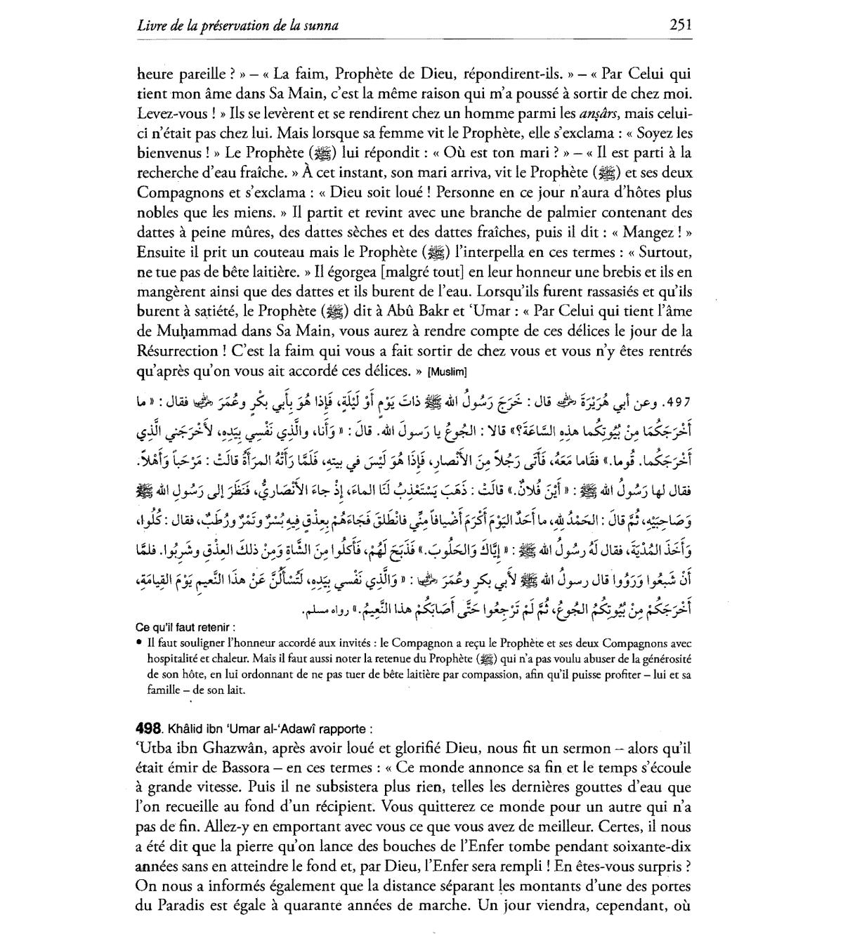 n'etait pas chez lui. Mais lorsque sa femme vit Ie Prophete, elle s'exdama :