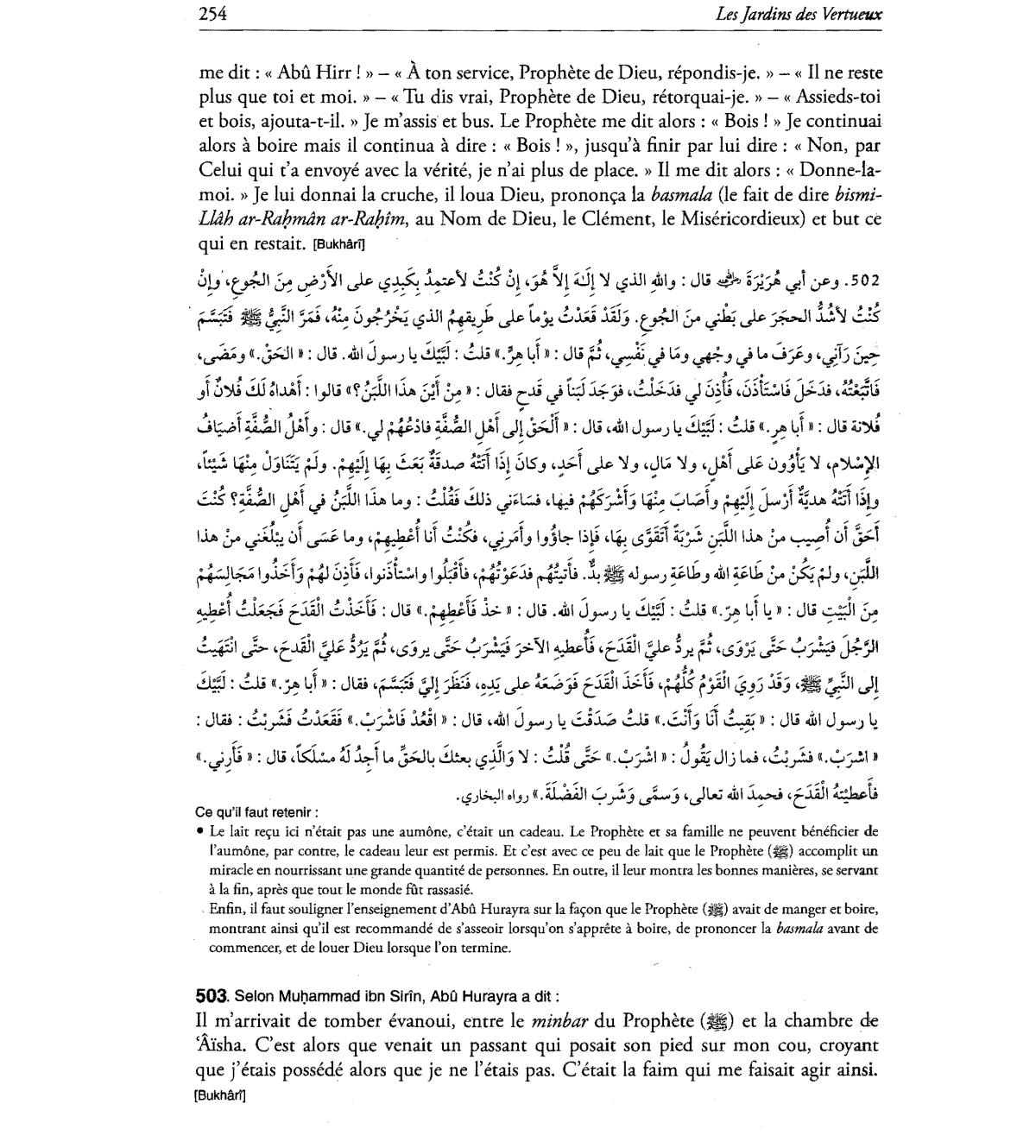 Enfin, il faut souligner l'enseignement d'Abu Hurayra sur
