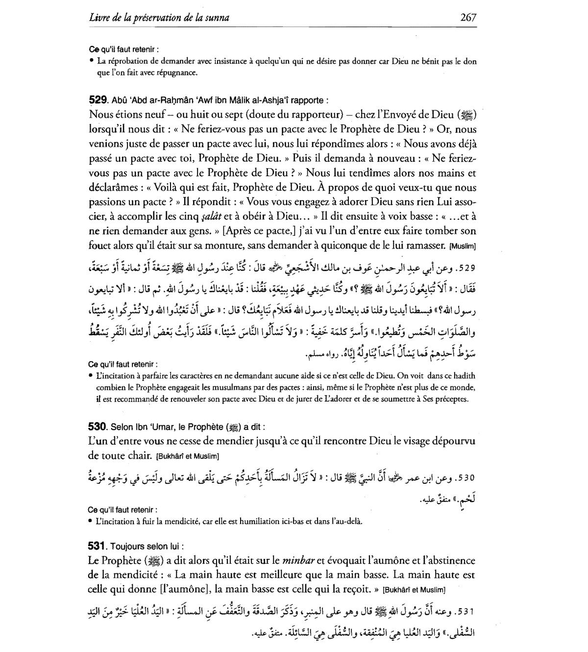 • Lincitation a parfaire les caracteres en ne demandant aucune aide si ce n'est celle de Dieu. On voit dans ce hadith