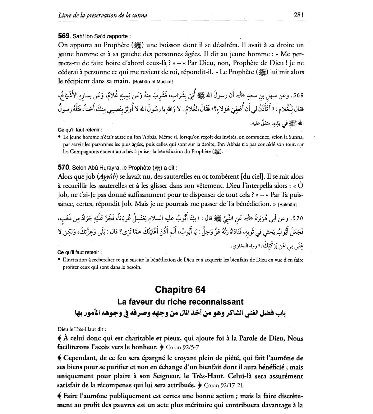 Cependant, de ce feu sera epargne Ie croyant plein de piete, qui fait l'aumone de