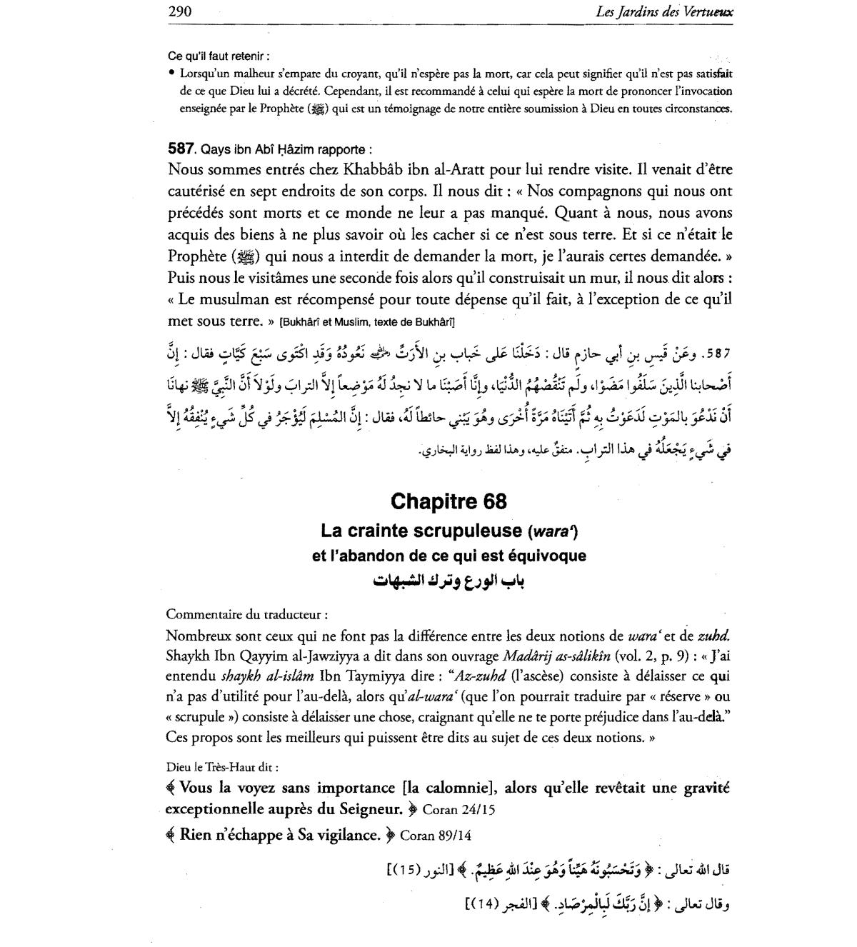 consiste a delaisser une chose, craignant qu'elle ne te porte prejudice dans l'au-deJa."