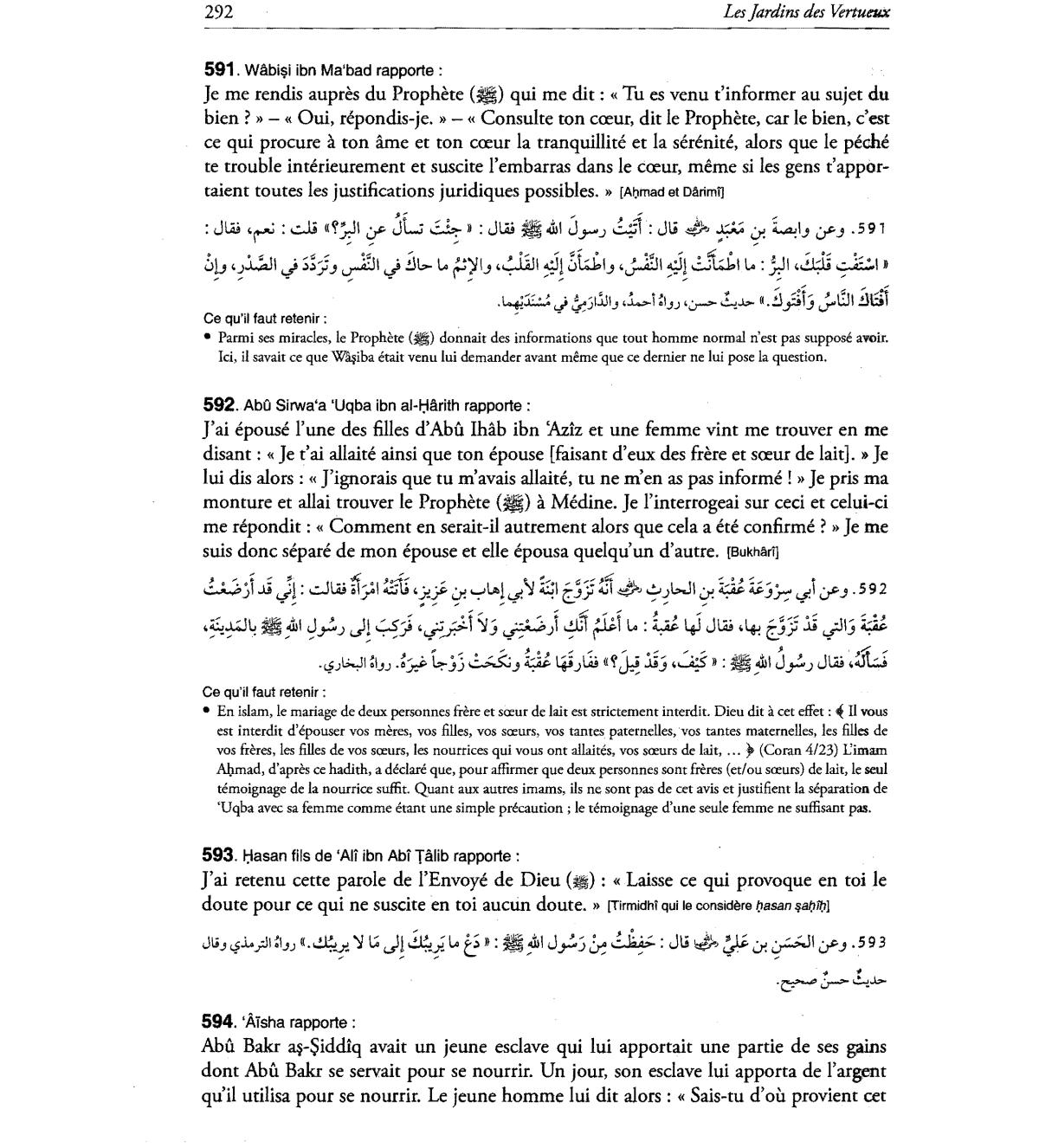 vos freres, les filles de vos so:urs, les nourrices qui vous ont allaites, vos so:urs de lait, ." ,. (Coran 4/23) Limam