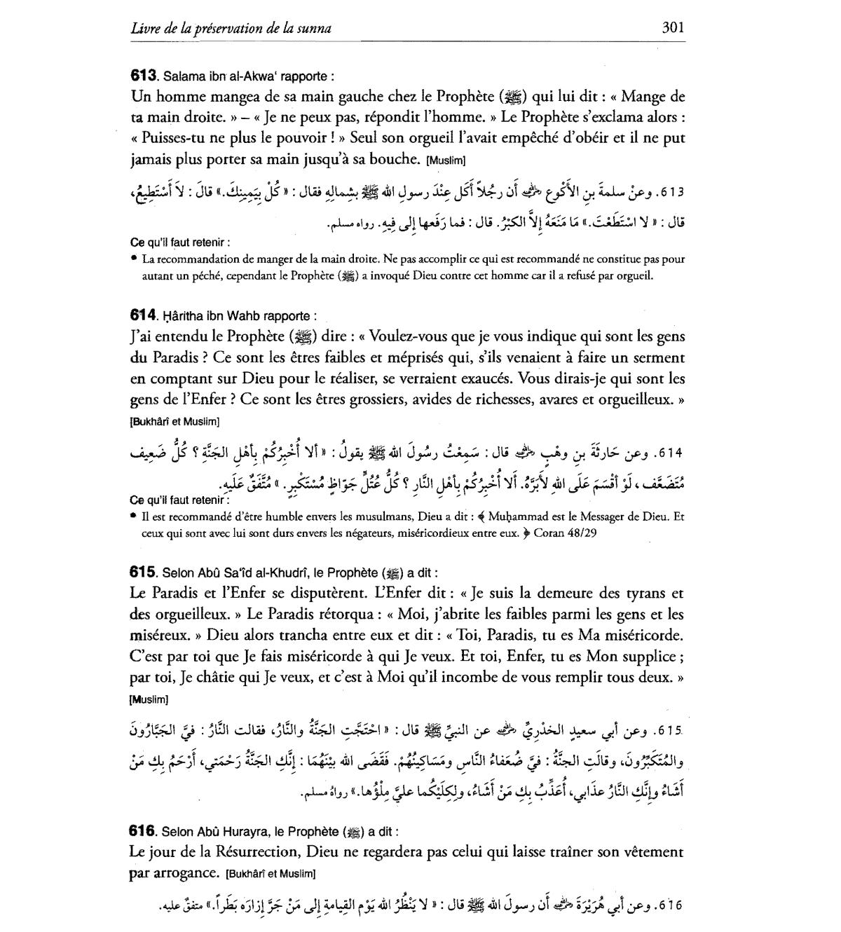 recommandation de manger de la main droite. Ne pas accomplir ee qui est recommande ne constitue pas pour
