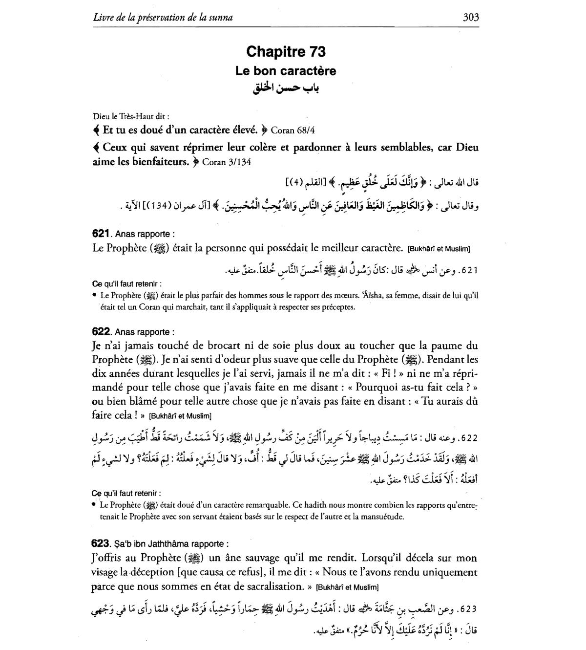 etait doue d'un caractere remarquable. Ce hadith nous monrre combien les rapports qu'entre: