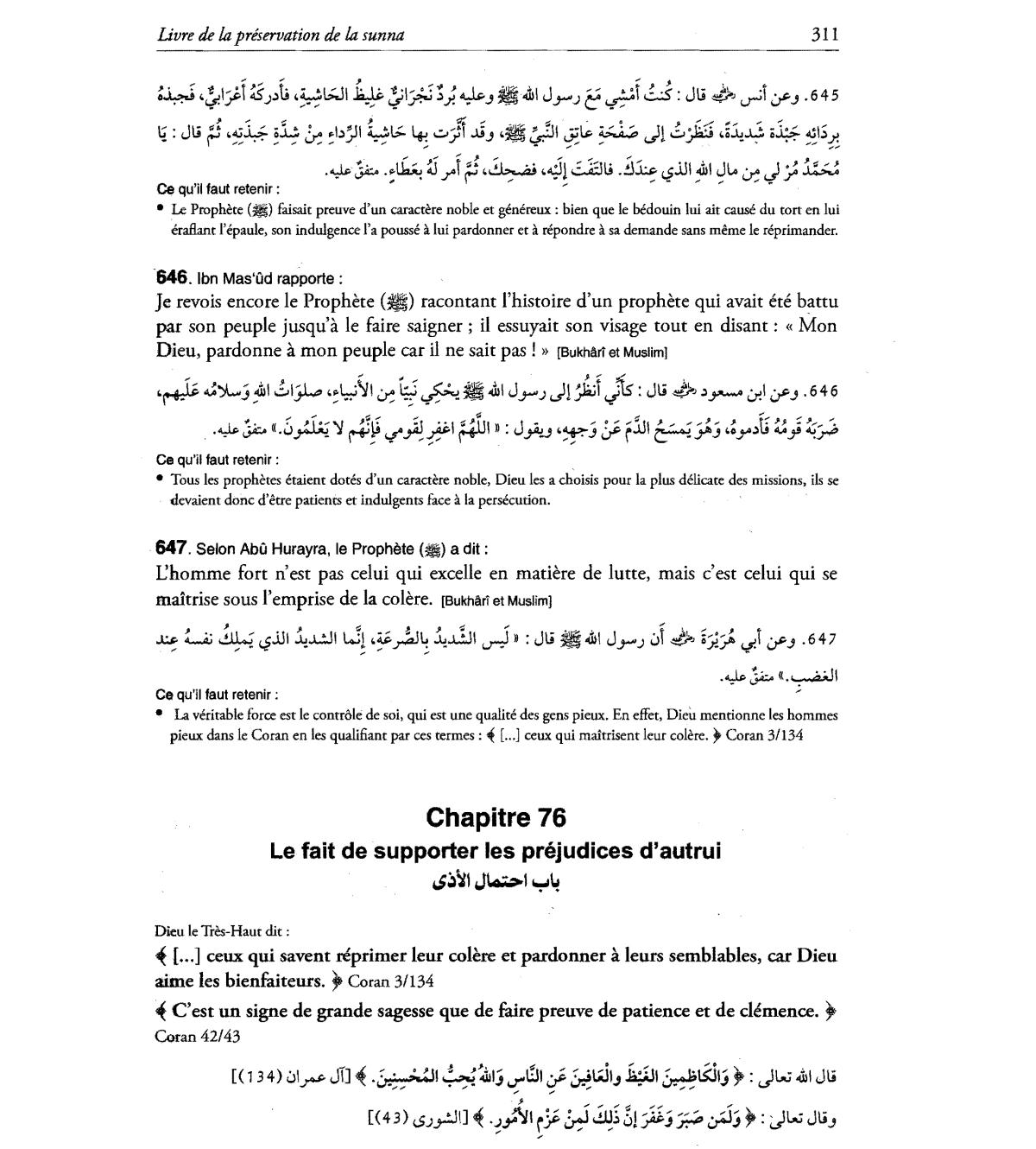ceux qui savent reprimer leur colere et pardonner