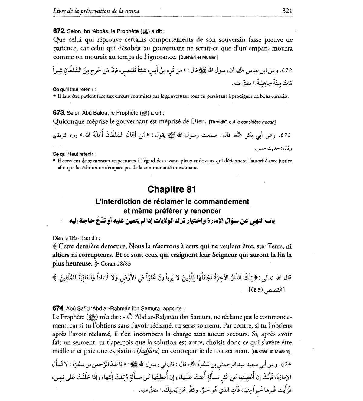 patience, car celui qui desobeit au gouvernant ne serait-ce que d'un empan, mourra