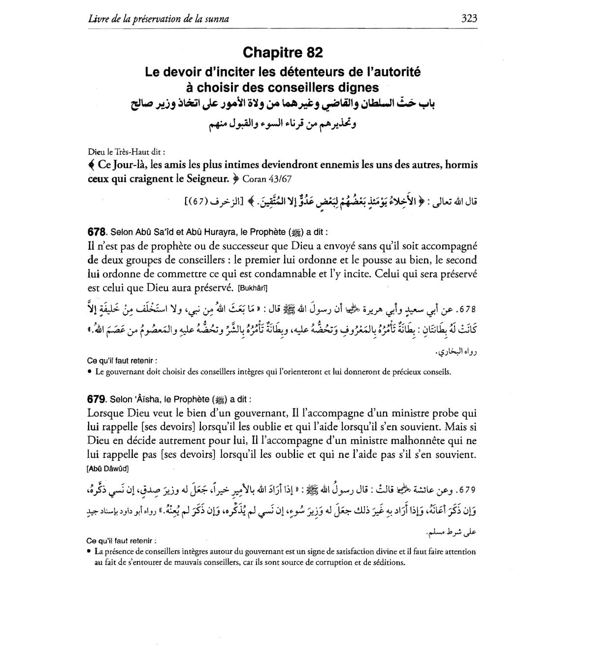 presence de conseillers integres autour du gouvernant est un signe de satisfaction divine et