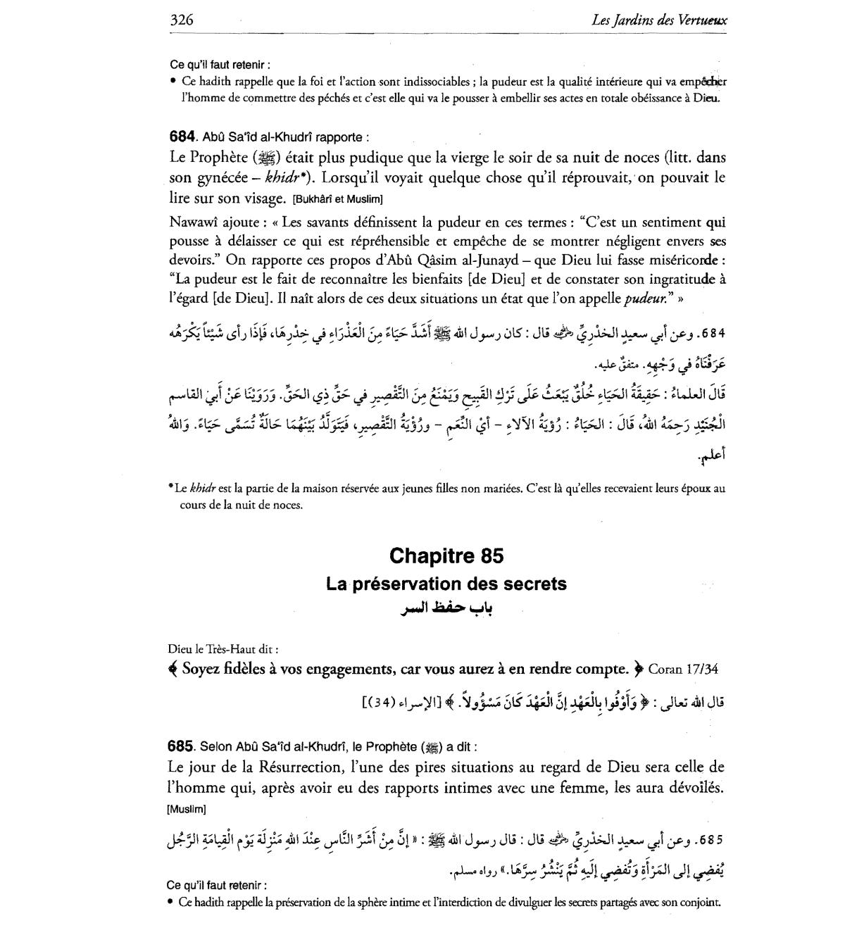 hadith rappelle que Ia foi et I'actionsont indissociabIes; Ia pudeur est