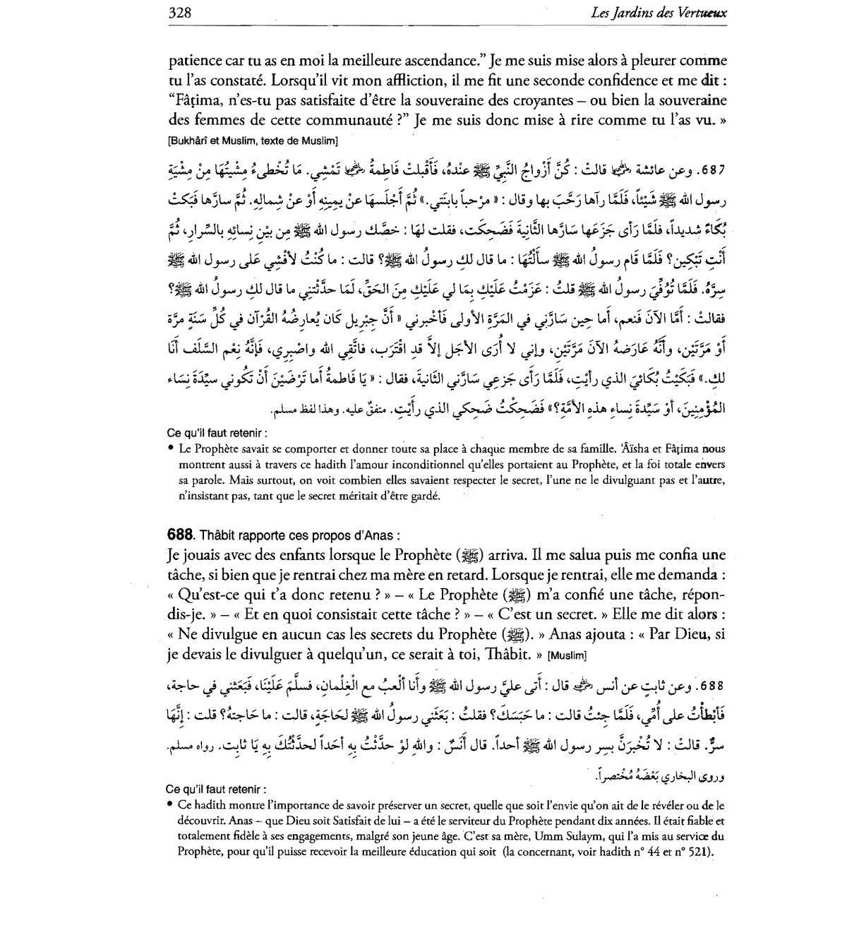 hadith montre I'importance de savoir preserver un secret, queUe que soh I'envie qu'on ait de Ie reveler ou