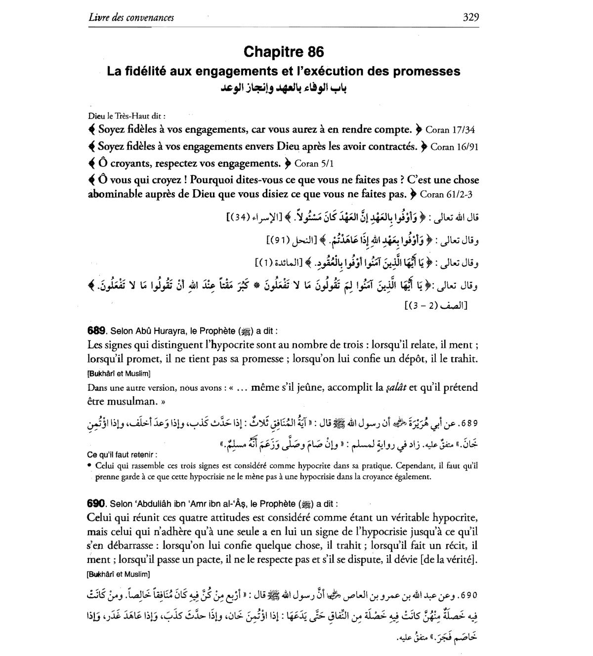 • Ce!ui qui rassemble ces trois signes est considere comme hypocrite dans sa pratique. Cependant, i! faut qu'i!