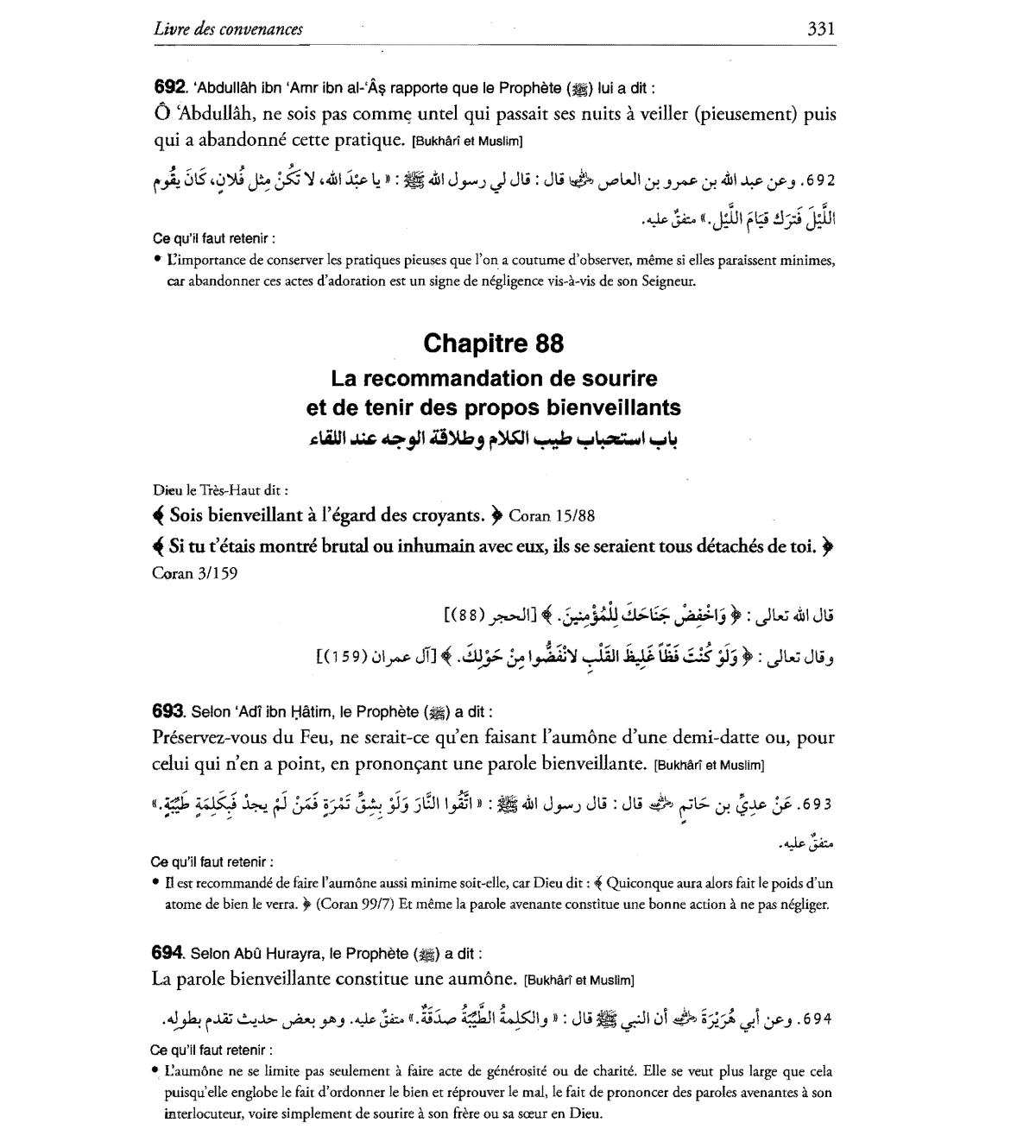 Et meme la parole avenante constitue une bonne action a. ne pas negliger.