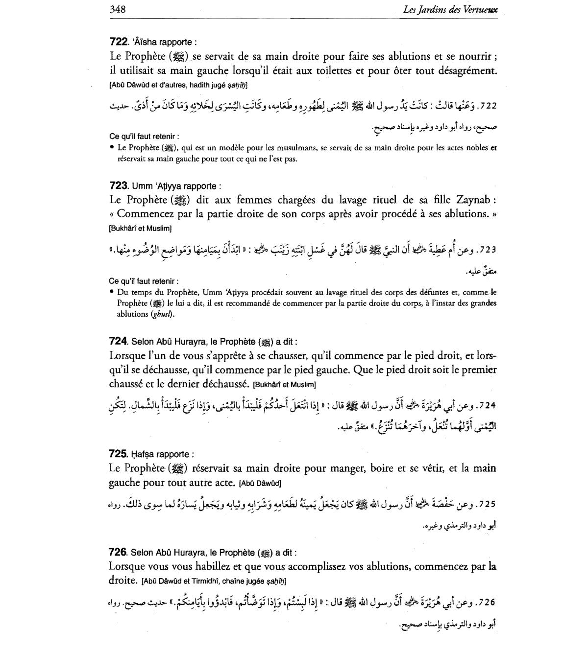 Prophete ("), qui est un modele pour les musulmans, se servait de sa main droite pour les actes nobles