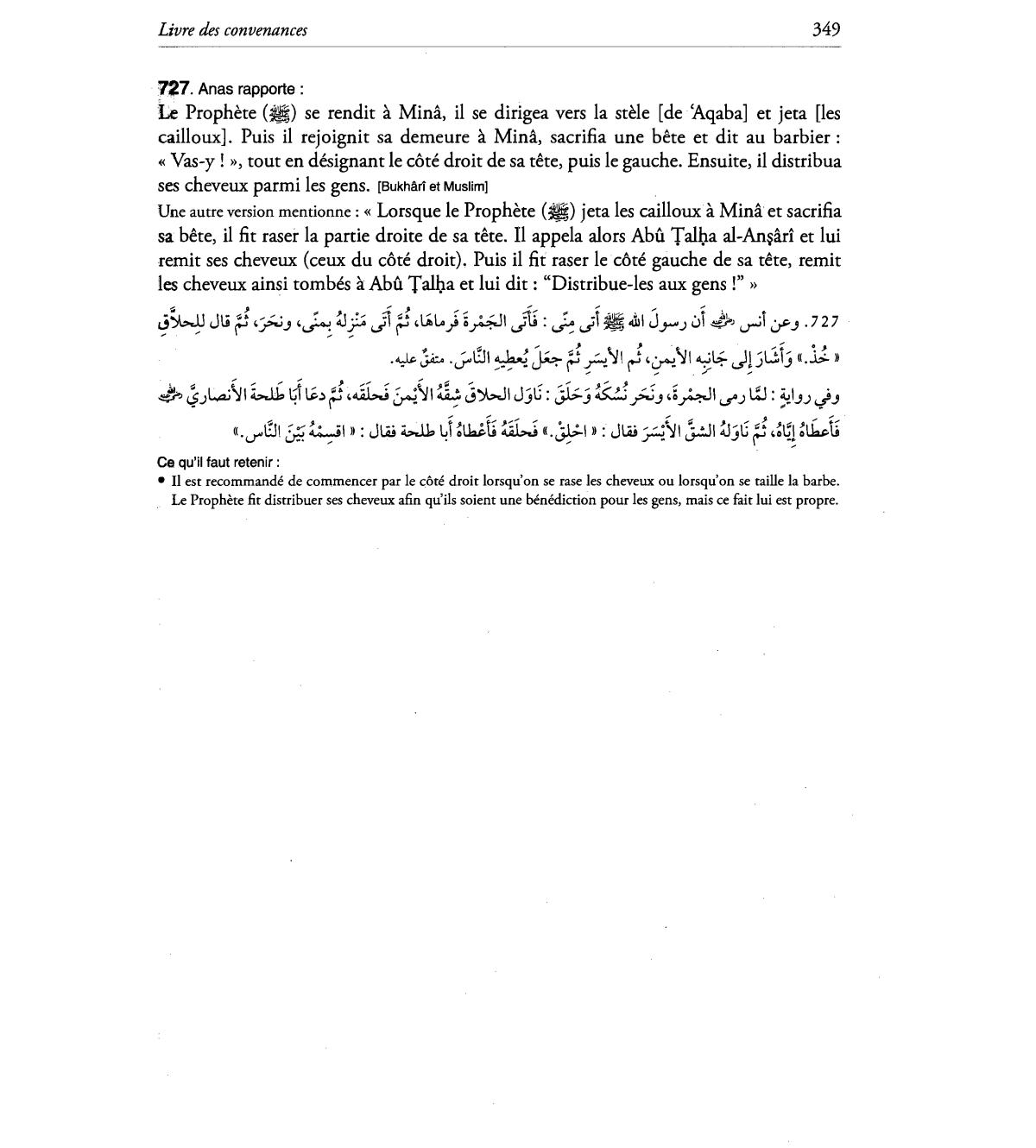 Le Prophete fit distribuer ses cheveux alin qu'ils soient une benediction pour les gens, mais ce fait lui est propre.