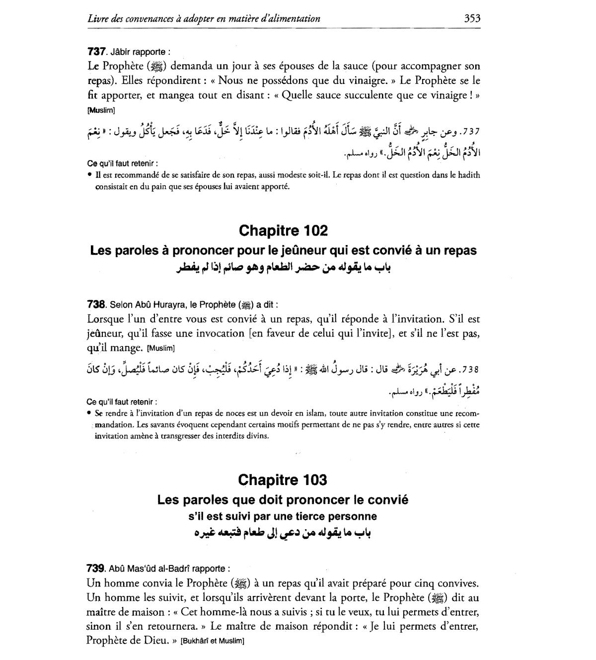 l'invitation d'un repas de noces est un devoir en islam, toute autre invitation constitue une recom