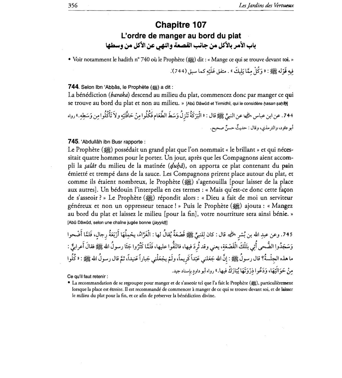 au bord du plat et laissez Ie milieu [pour la fin], votre nourriture sera ainsi benie.