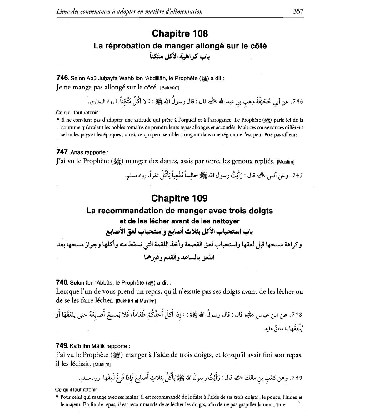 • Pour celui qui mange avec ses mains, il est recommande de Ie faire