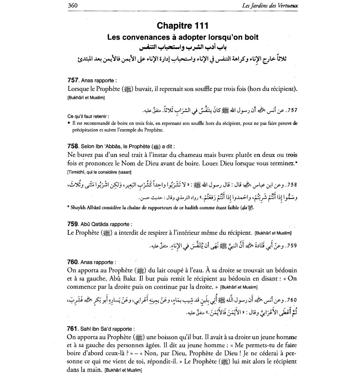 fois et' prononcez Ie Nom de Dieu avant de boire. Louez Dieu Iorsque vous terminez.