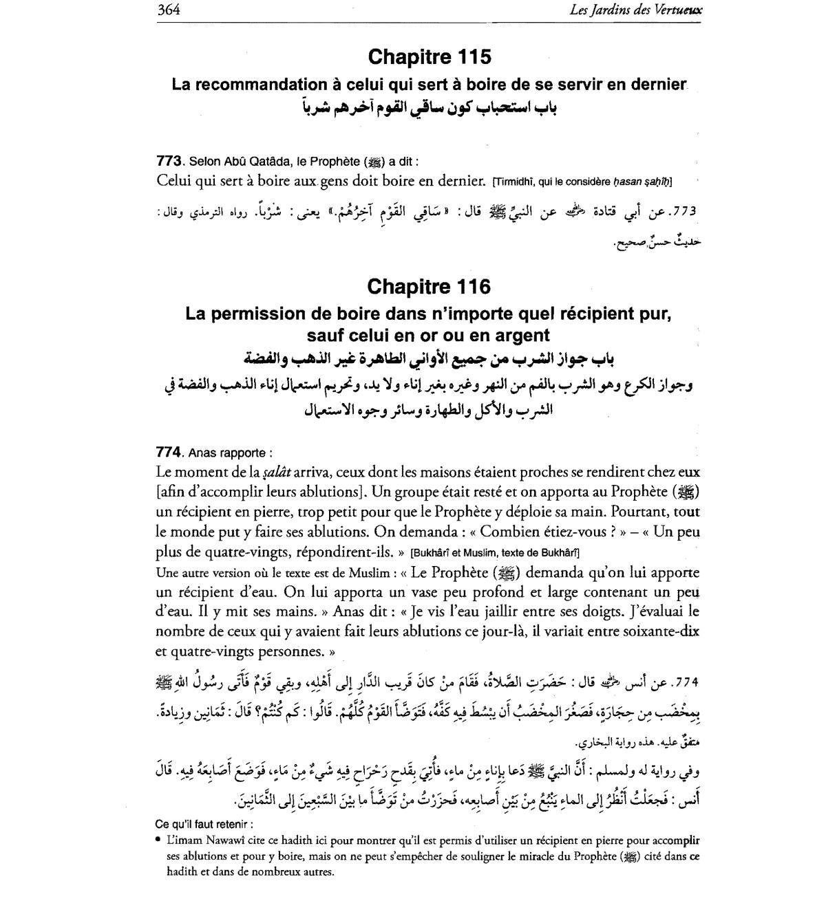 • I.:imam Nawawi cite ce hadith ici pour montter qu'il est permis d'utiliser un recipient en pierre pour accomplir