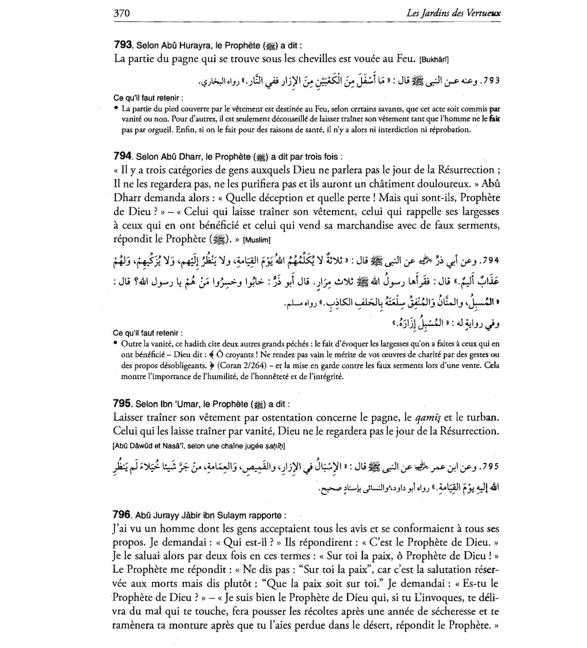 Celui qui les laisse traIner par vanite, Dieu ne Ie regardera pas Ie jour de la Resurrection.