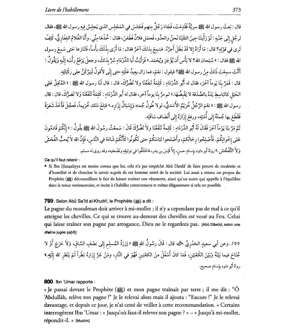 atteigne les chevilles. Ce qui se trouve au-dessous des chevilles est voue au Feu. Ce1ui