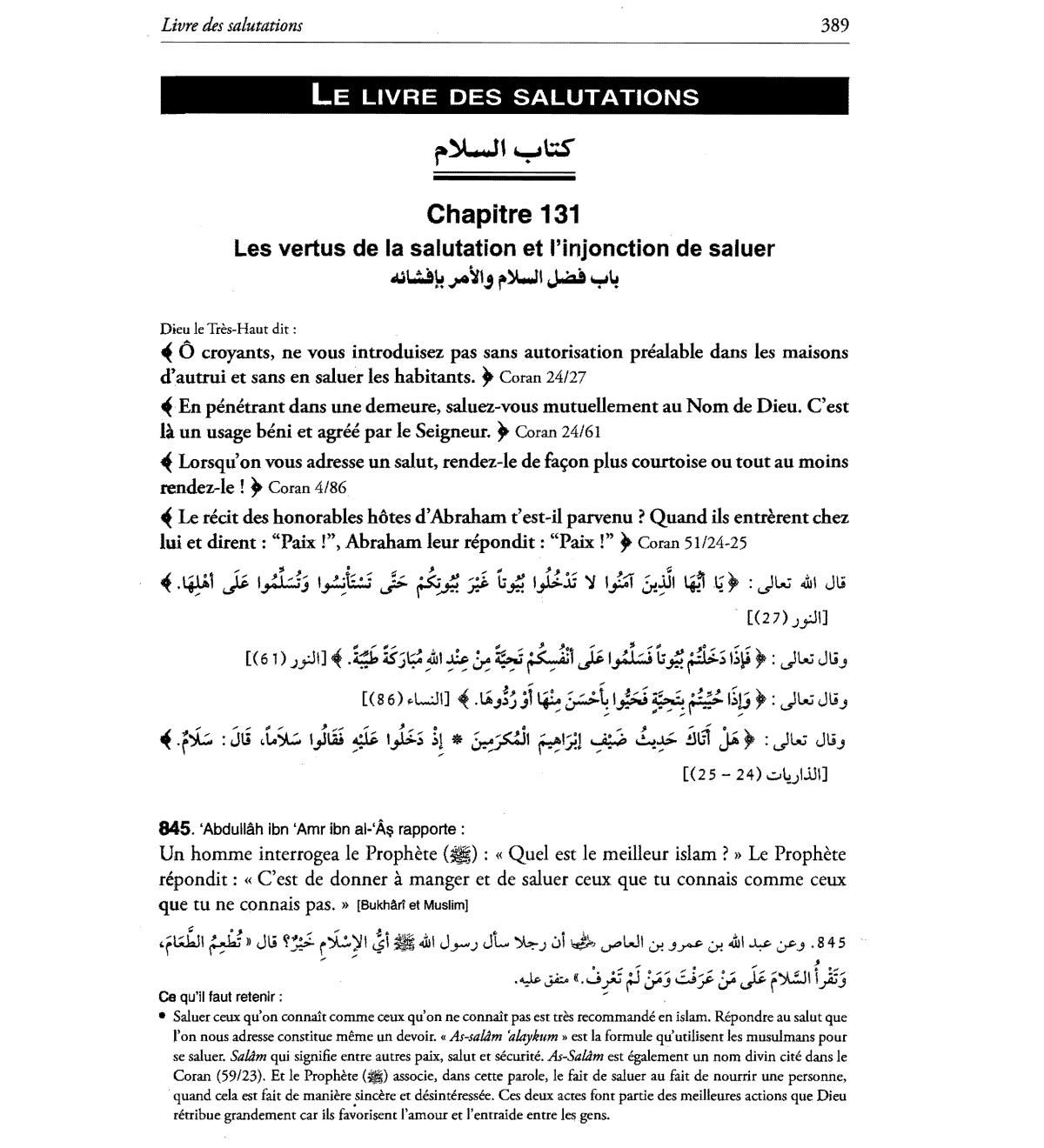 Les vertus de la salutation et I'injonction de saluer