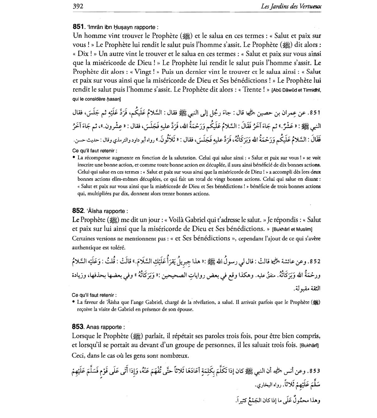 rendit Ie salut puis l'homme s'assit. Le Prophete dit alors :