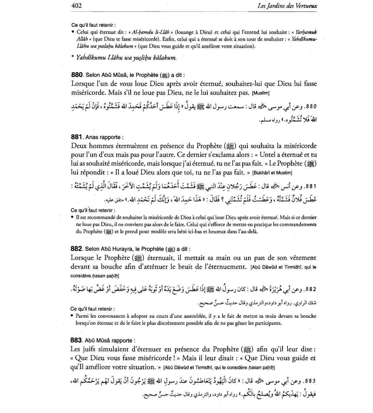 Lorsque l'un de vous loue Dieu apres avoir eternue, souhaitez-Iui que Dieu lui fasse