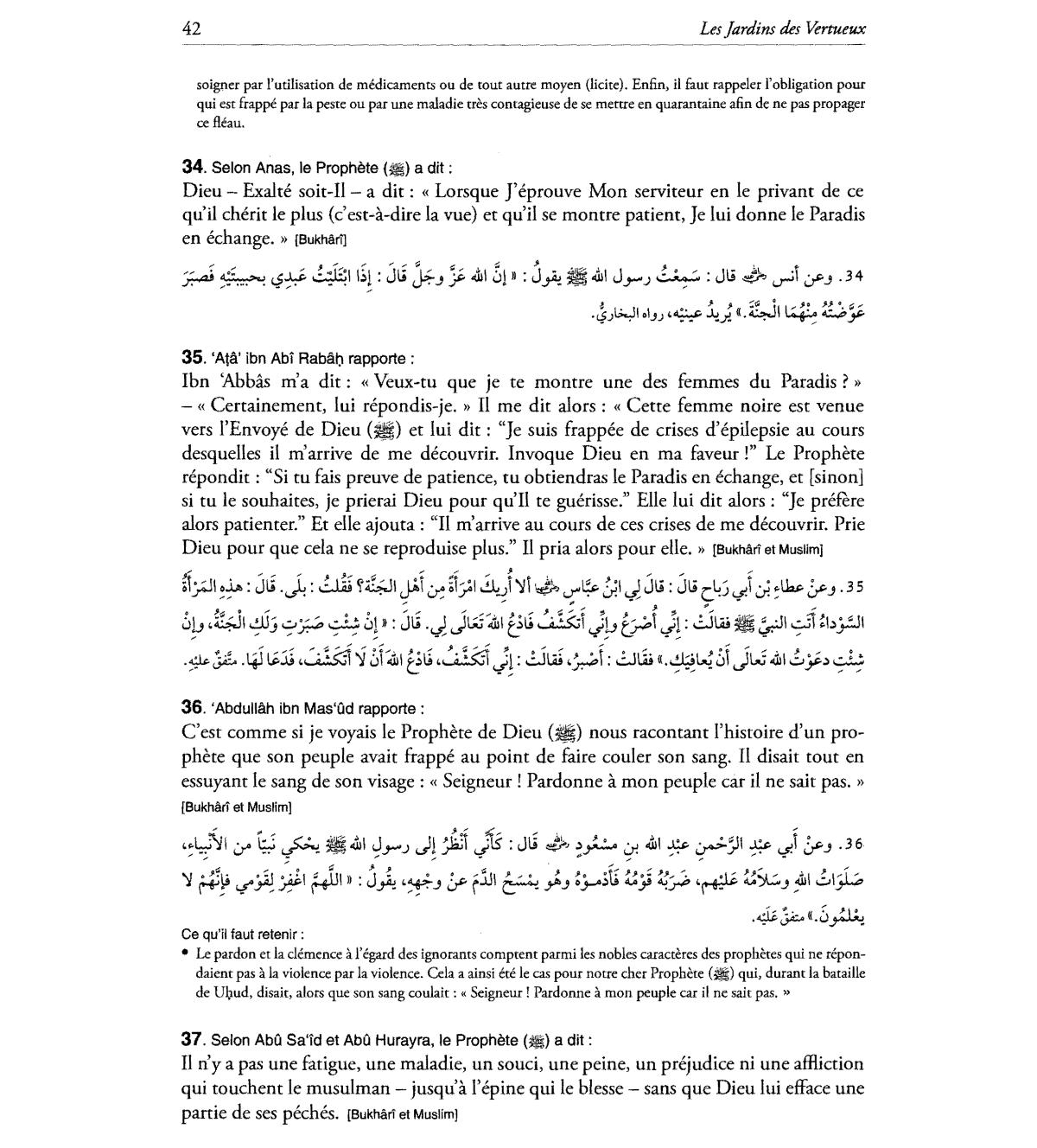 repondit : "Si tu fais preuve de patience, tu obtiendras Ie Paradis en echange, et [sinon]